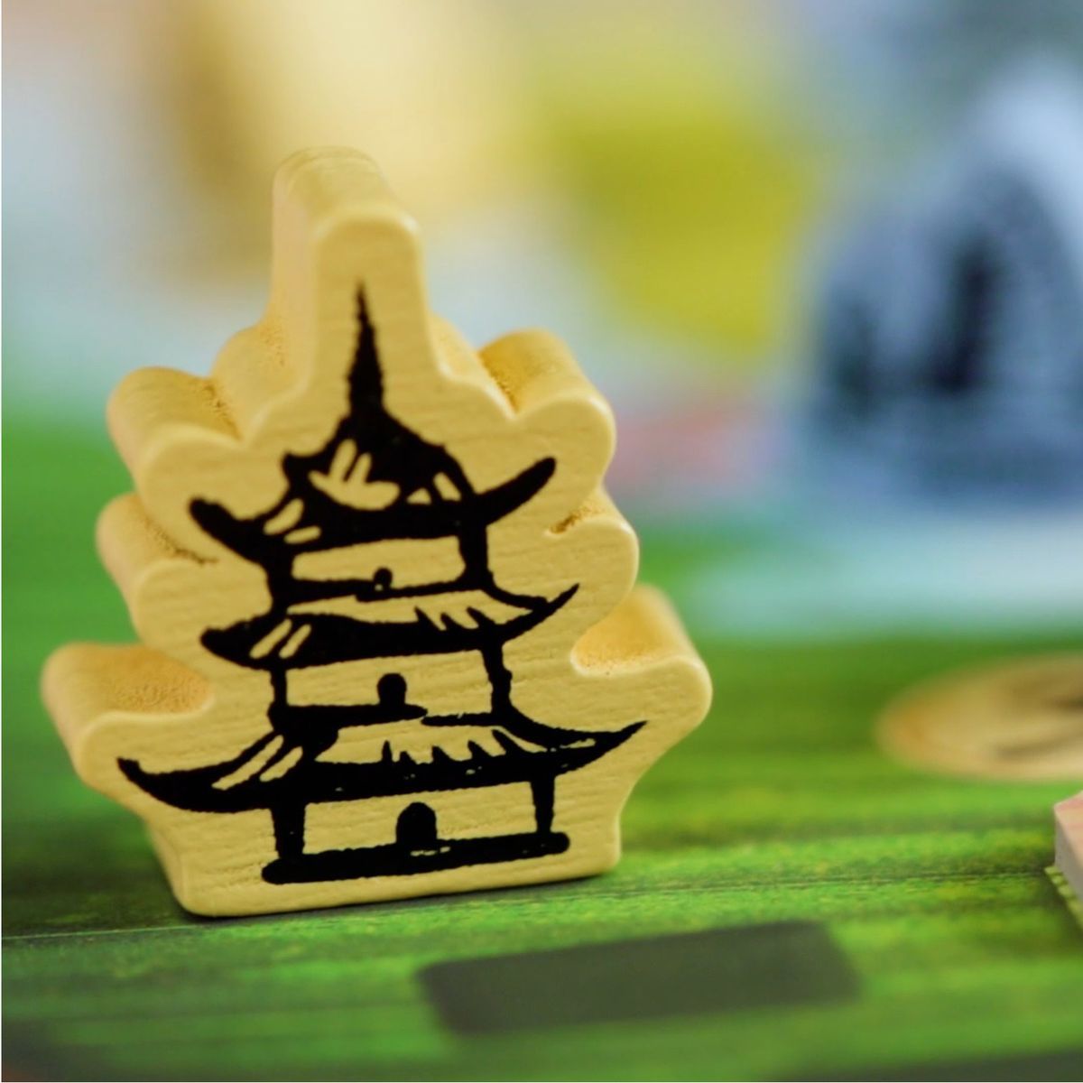 Obsah: herný plán, 4 hráčske dosky, pagody, figúrky pracovníkov a lodí, žetóny bodov, šálok, cisára a bonusov, dlaždice zvitkov a šálok, 44 štartovacích kariet, karty cisára, akčné a karavan karty, prehľadové karty, CZ/SK pravidlá