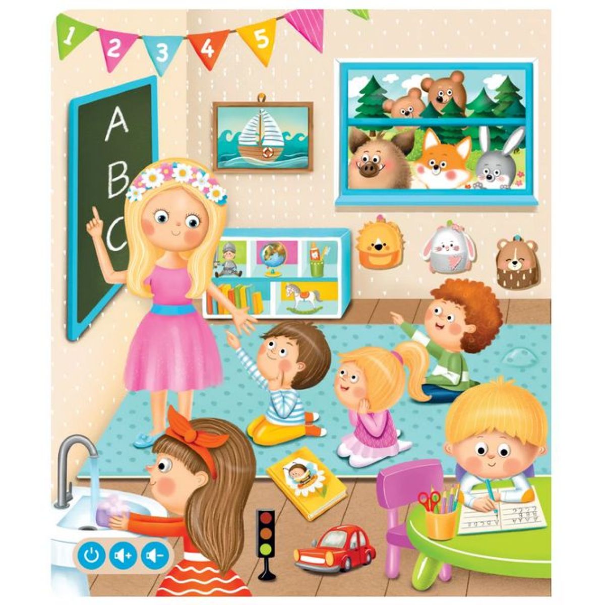 Každá stránka mluvicí knihy z edice Kouzelné čtení skrývá nové překvapení – od školky a parku přes pohádkový les až po tělocvičnu a farmu se zvířátky.