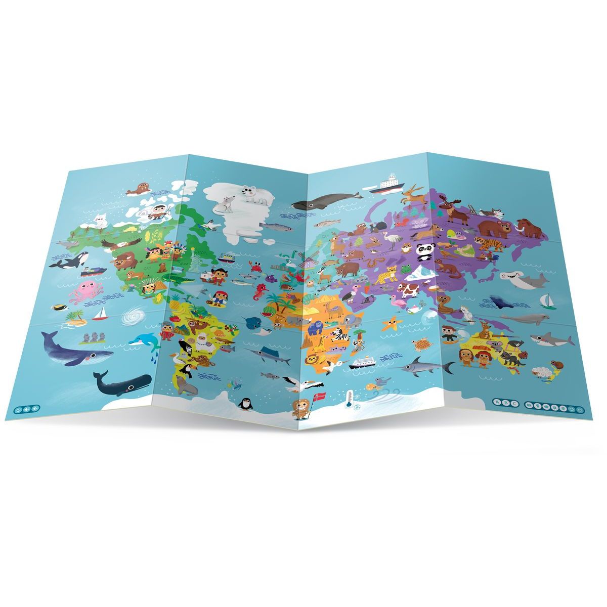 Vydejte se s interaktivní Mapou světa z edice Albi Kouzelné čtení na dobrodružnou cestu kolem planety! Děti od 5 let objevují exotická zvířata, rostliny a tajemná místa pomocí elektronické Albi tužky. Mapa je vyrobena z pevného materiálu, takže její zkoumání je bezpečné a zábavné, a obsahuje více než 700 zvukových stop, které promění učení v dobrodružství plné objevů.