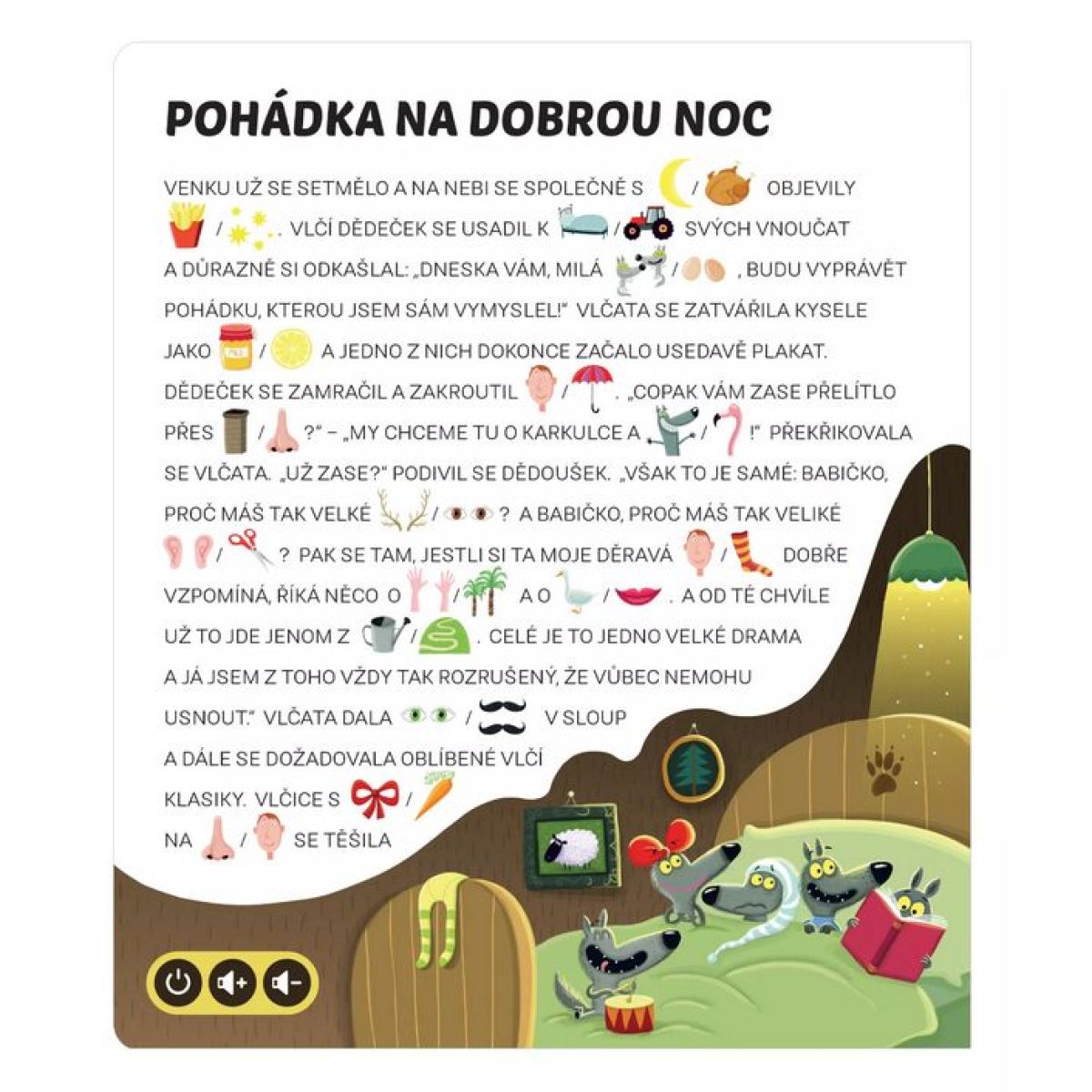 Když zapadne slunce a vlčata nechtějí spát, přichází na řadu vlčí dědeček se svými pohádkami. Interaktivní kniha Albi Kouzelné čtení Obrázkové čtení: Pohádky vlčího dědečka přináší dětem od 5 let osm příběhů o strašidlech, kde si mohou vybrat, zda je chtějí číst klasicky, nebo legračně.