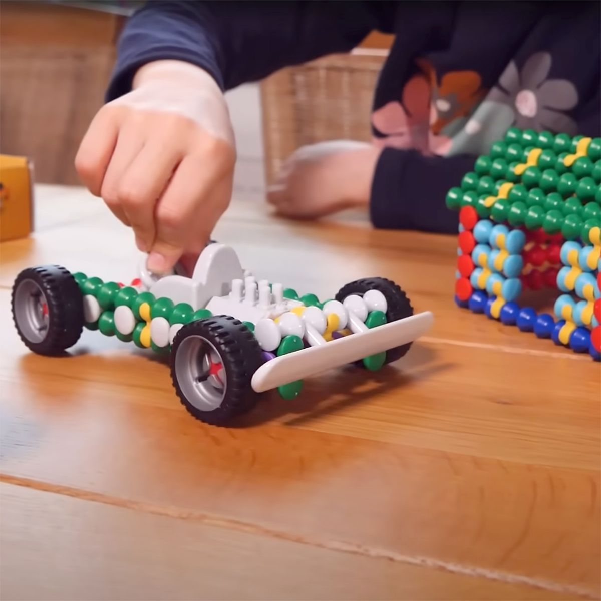 Jednotlivé dílky lze skládat do výšky a pomocí dvou typů klipů je pevně spojit, takže hotové konstrukce odolají i nadšenému hraní. Stavebnice přirozeně rozvíjí kreativitu, soustředění a radost z tvoření.