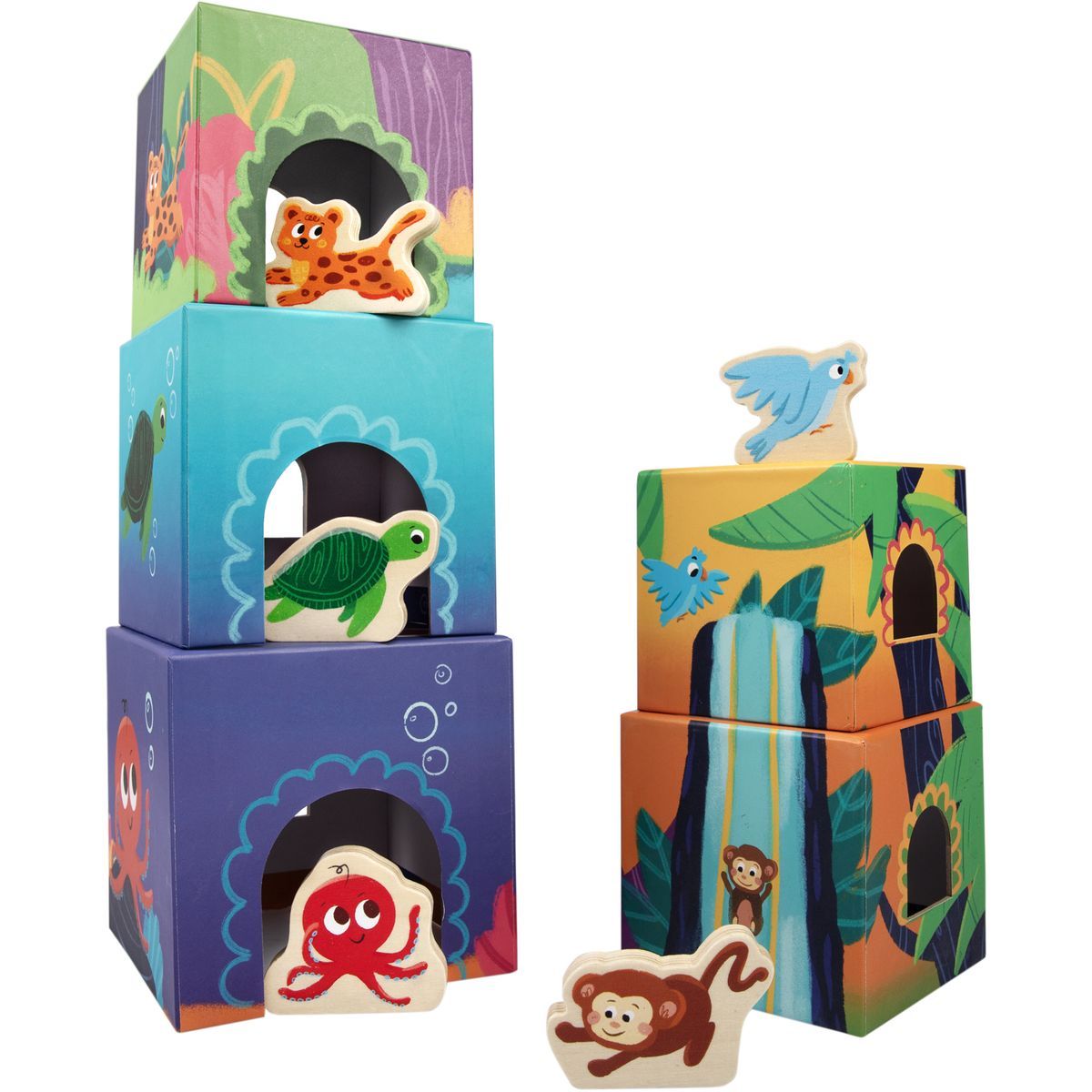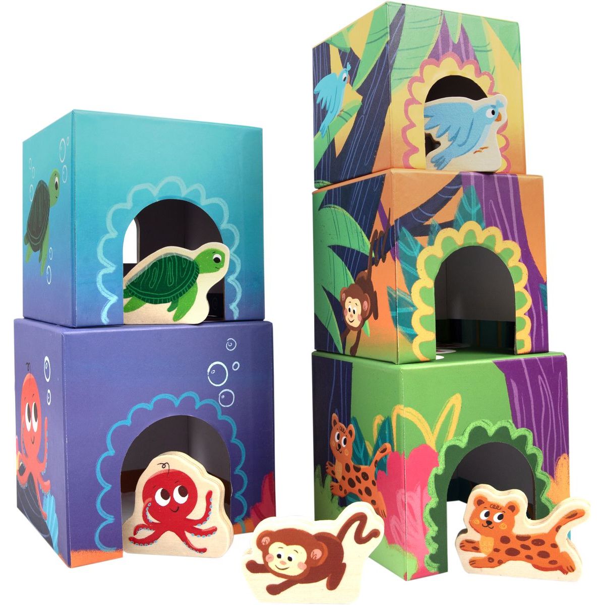 Objevte hravý svět Kvído – Zvířátkových domečků s aktivitami, kde každý kartonový domeček skrývá nové dobrodružství. Děti mohou stavět vysoké věže, poznávat zvířátka, barvy i čísla, vymýšlet malé divadelní scénky nebo řešit jednoduché hádanky.