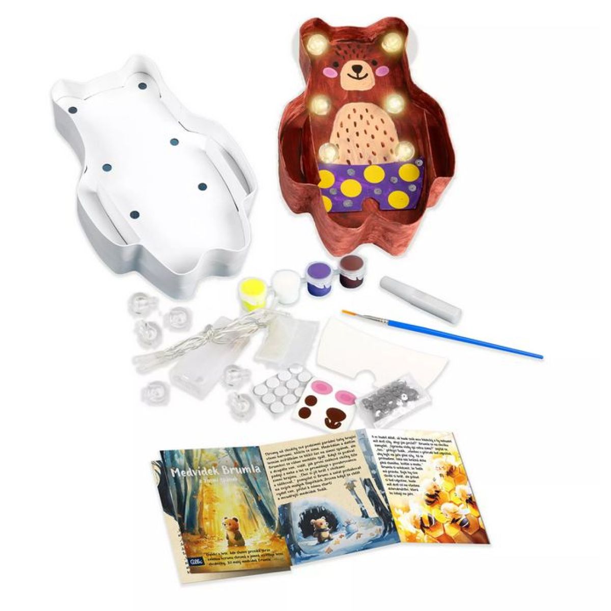 Roztomilý medvídek Brumla přichází, aby vnesl světlo do dětského pokoje i radost do tvoření! S kreativní sadou Albi Lampička Brumla si děti vyrobí svého vlastního svítícího kamaráda, který jim bude dělat společnost při čtení, hraní i usínání.