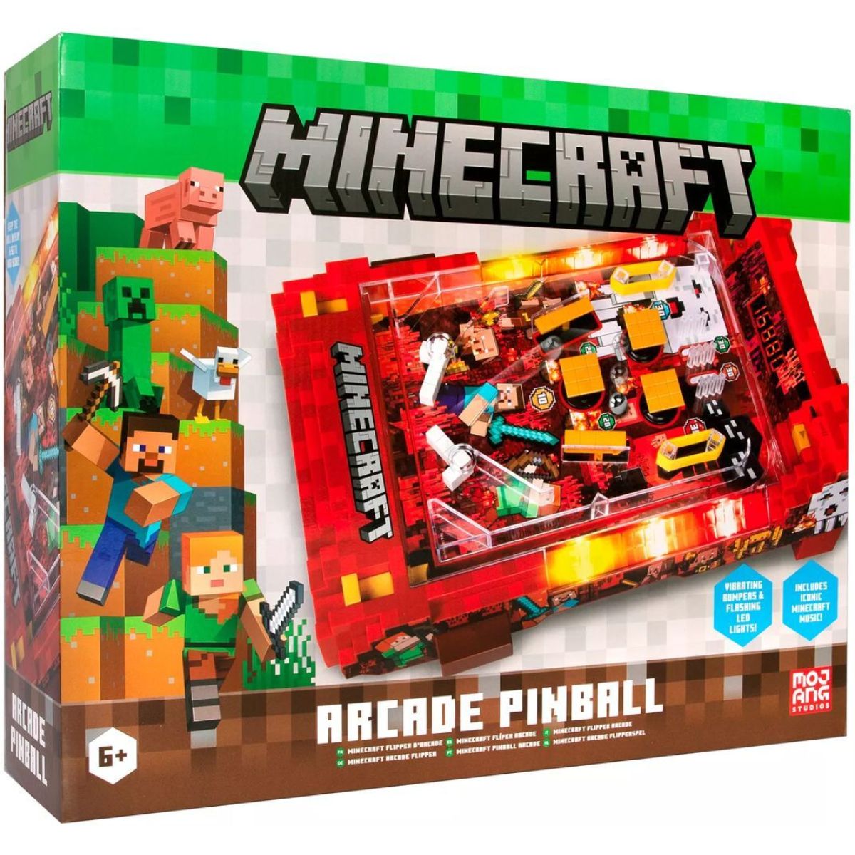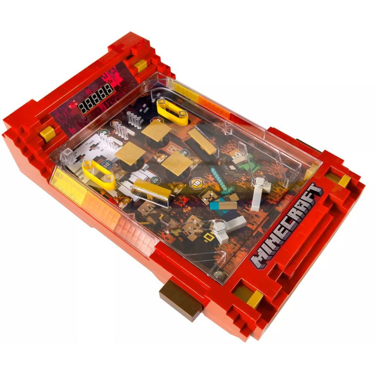 Přeneste se do žhavého Netheru a užijte si arkádovou zábavu kdykoli a kdekoli! Minecraft Arcade Pinball – Nether spojuje klasickou pinballovou dynamiku s ikonickými pixelovými efekty a lávovou atmosférou světa Minecraft. Vystřelujte kuličku, bojujte o nejvyšší skóre a nechte se vtáhnout autentickými zvuky a LED zobrazením, které připomínají pravý arcade zážitek. Kompaktní provedení a bateriové napájení dělají z této hry ideální společník pro malé i velké fanoušky Minecraftu.