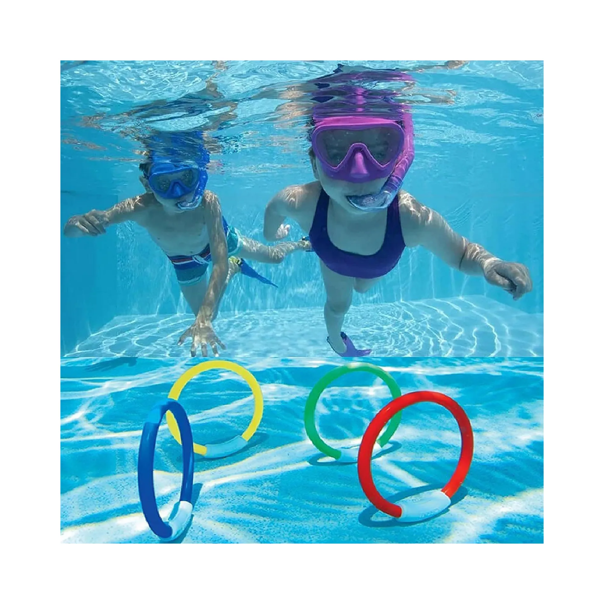 Stačí vhodit barevné potápěcí pomůcky do vody a sledovat, jak klesnou ke dnu. Úkolem hráčů je je postupně vylovit a splnit různé výzvy na rychlost nebo postřeh. Díky různým tvarům – kroužkům, mořským řasám a tyčkám s čísly – nabízí sada mnoho herních možností a zároveň pomáhá dětem rozvíjet plavecké i potápěčské dovednosti.