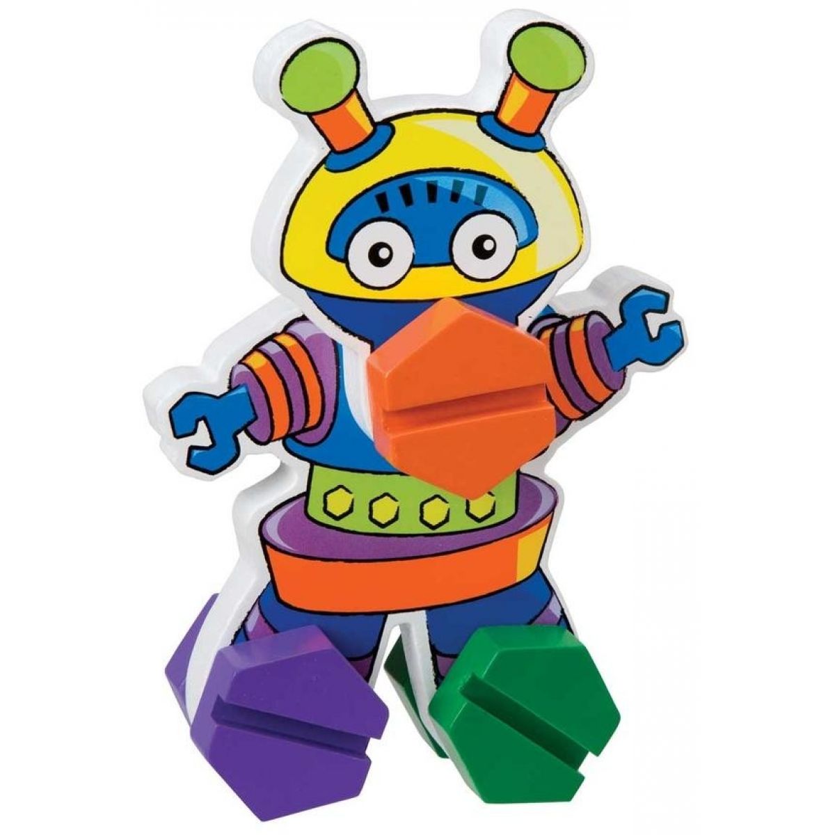 Obsah: ponk, 2-dílný robot, 3-dílné nákladní auto, kladivo, šroubovák, klíč, pilku, úhelník, 4 hřebíky a 11 šroubů s matkami.
