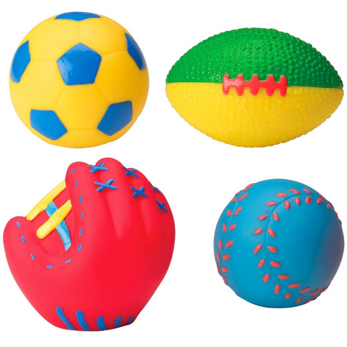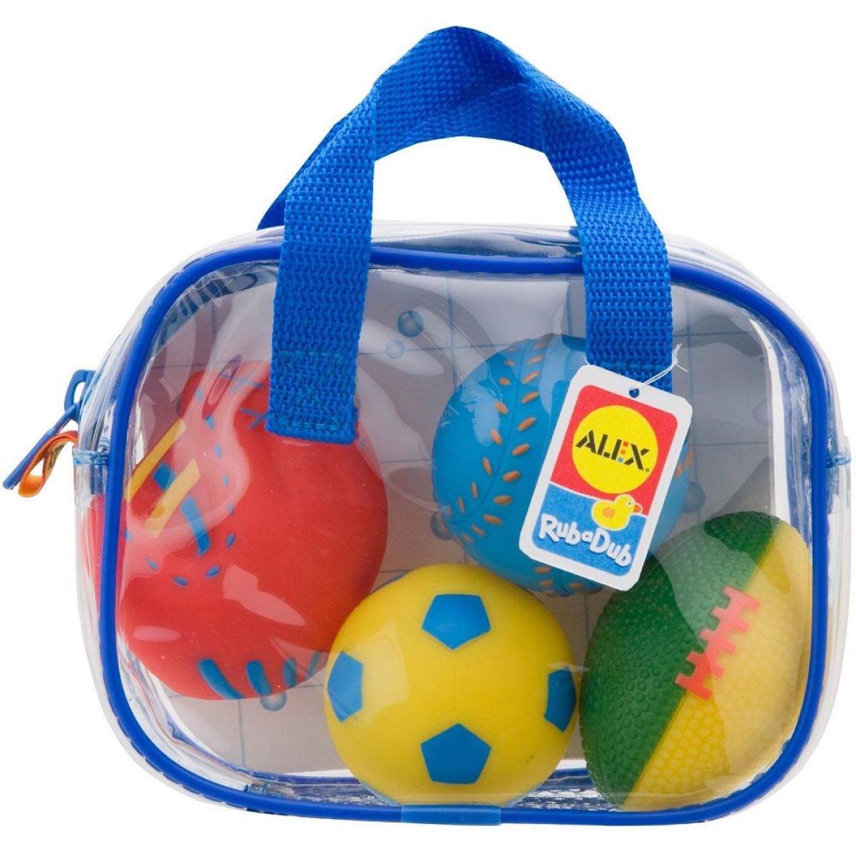 Sportovní míčky určené dětem od 6 měsíců, pro zábavu při koupání. Jsou měkké, zabaleny v taštičce z PVC. Ta je opatřena zipem a úchyty.