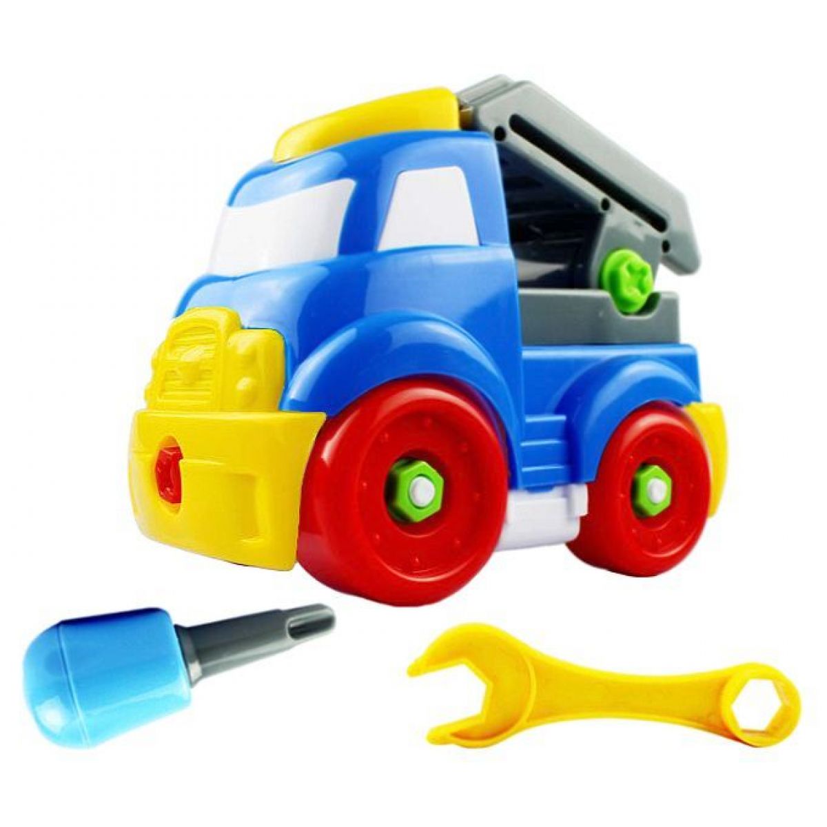 Zahraj si na mechanika. Autíčko můžeš složit a zase rozložit. Šroubuj a utahuj závity stále znovu. Rozebírat a opětovně skládat pomocí přiloženého nářadí je nekonečná zábava pro malého montéra.