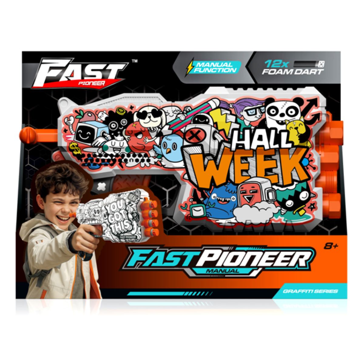 Užijte si zábavu plnou akce s manuální pistolí Fast Pioneer! Tato hračka nepotřebuje baterie, takže stačí natáhnout a střílet. V balení najdete 12 měkkých pěnových nábojů, které jsou bezpečné pro děti i okolí. Pistolka je lehká a odolná, takže ji děti mohou pohodlně používat doma i venku při hrách s kamarády. Skvělý způsob, jak trénovat přesnost a zároveň si užít spoustu legrace.