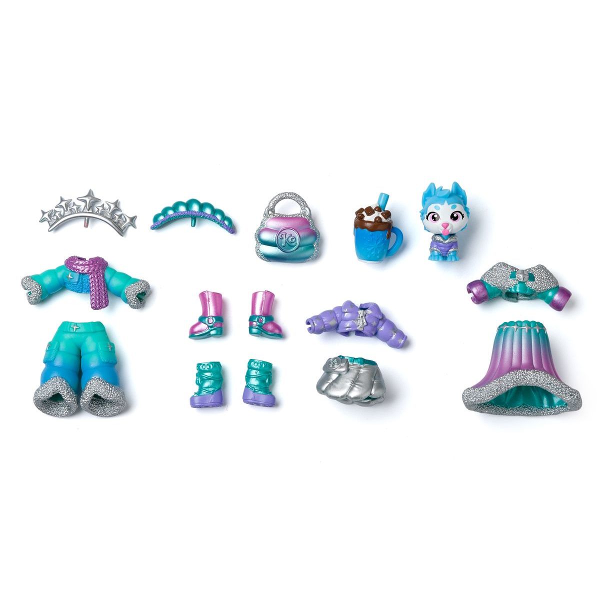 Obsah: panenka Chloe, 3 outfity, 2 páry bot, 2 tiáry, svačinka, mazlíček, kabelka