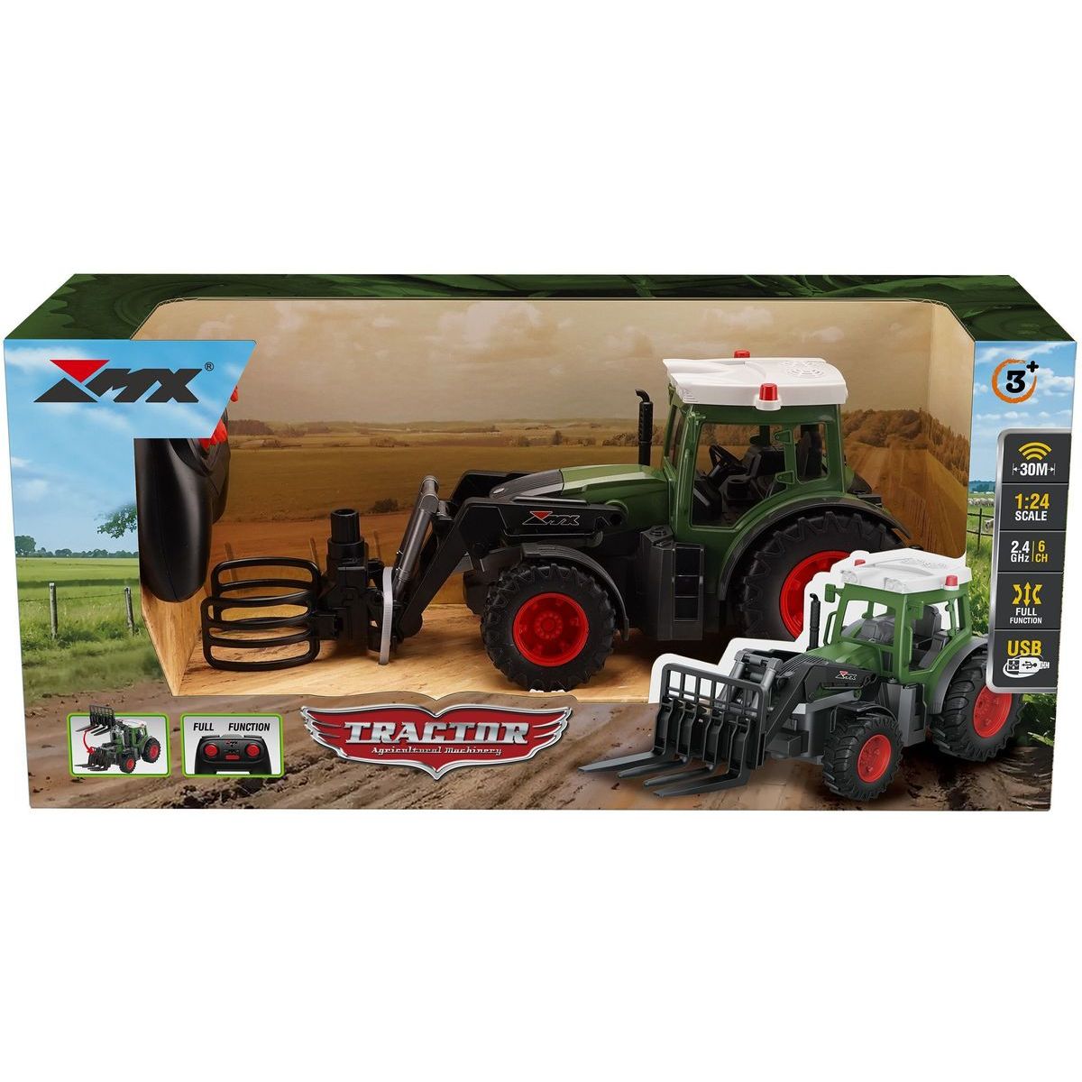 Dálkově ovládaný farmářský traktor s širokými koly a realistickým světelným efektem. Nabízí plné ovládání – jízdu vpřed a vzad, otáčení vlevo i vpravo. Ovládání na moderní frekvenci 2.4 GHz zajišťuje stabilní signál a dosah až 30 metrů. Nabíjení je pohodlné přes USB. Specifikace: 6 kanálů pro plnou kontrolu, široká kola pro lepší stabilitu a trakci, světelný efekt pro větší realističnost, rychlost 2–3 km/h, dosah ovladače 20–30 m.