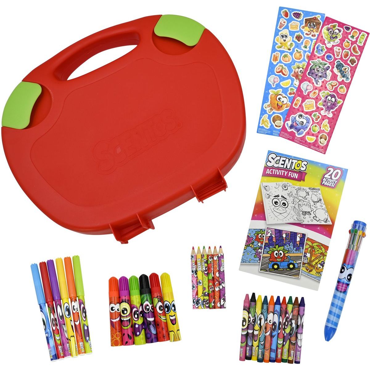 Vše, co malé kreativce potřebují, mají nyní na dosah ruky! Praktický Scentos kufřík plný voňavých fixů, pastelek, voskovek, omalovánek a dalších tvořivých pomůcek. Ideální pro cesty, výlety nebo chvíle, kdy je potřeba zabavit děti kdekoliv a kdykoliv. Přenosný kufřík s úložným prostorem obsahuje voňavé psací potřeby a kreativní aktivity. Skvělé na cesty, do školy i na doma. Podporuje kreativitu a jemnou motoriku. Netoxické a bezpečné pro děti.