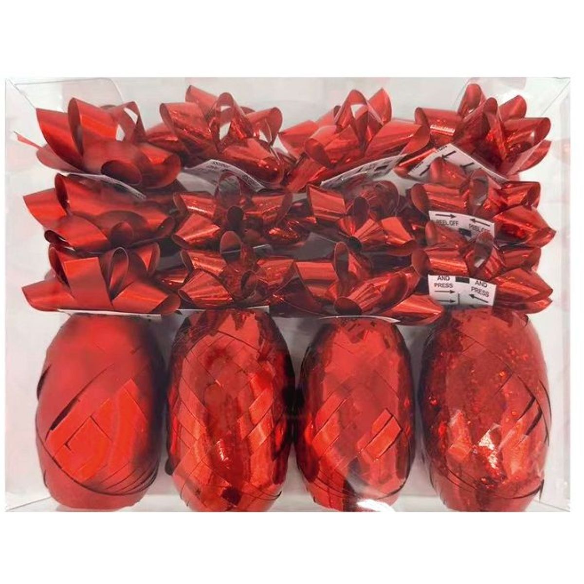 Anděl Přerov Sada na balení dárků červená, rozeta 5 x 2 x 5 cm 12 ks, stuha 0,5 cm x 10 m 4 ks