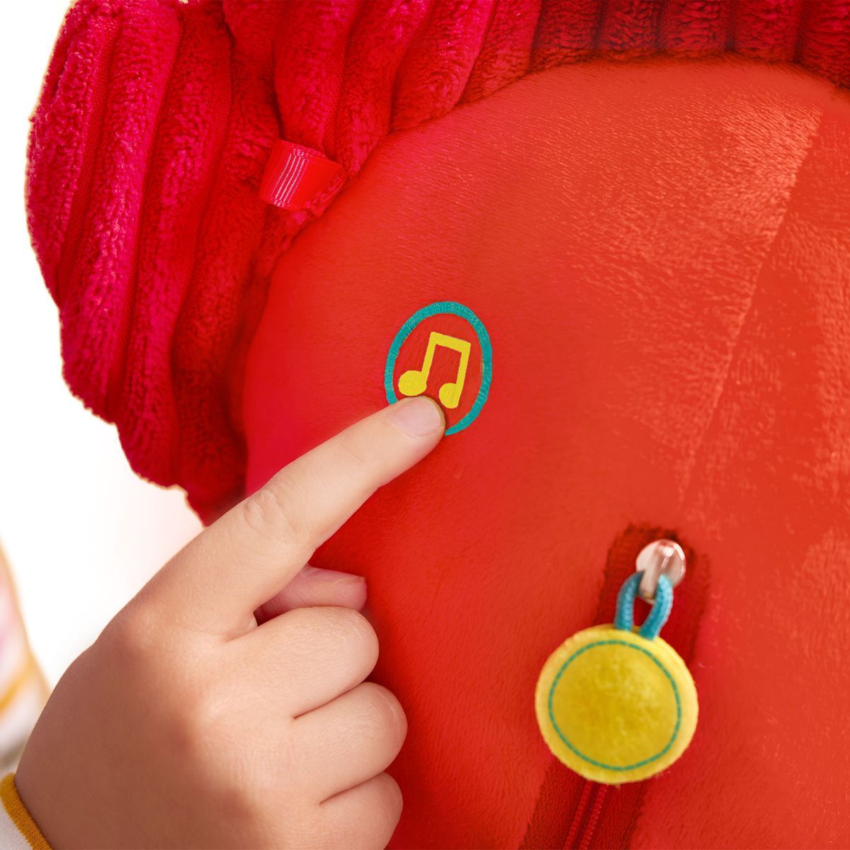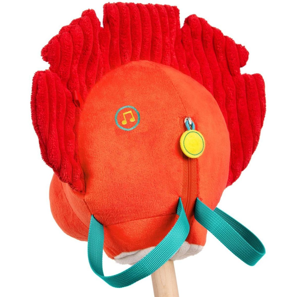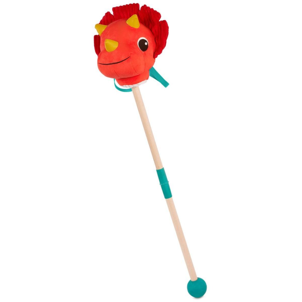 Hebká hlava stimuluje hmat a stisknutím tlačítka se ozvou veselé dinosauří zvuky. Díky pogumované spodní části nezanechává tyč škrábance na podlaze. Hračka rozvíjí hrubou motoriku a koordinaci pohybů. Součástí balení jsou 2 vyměnitelné AAA baterie. Vhodné pro děti od 2 let.