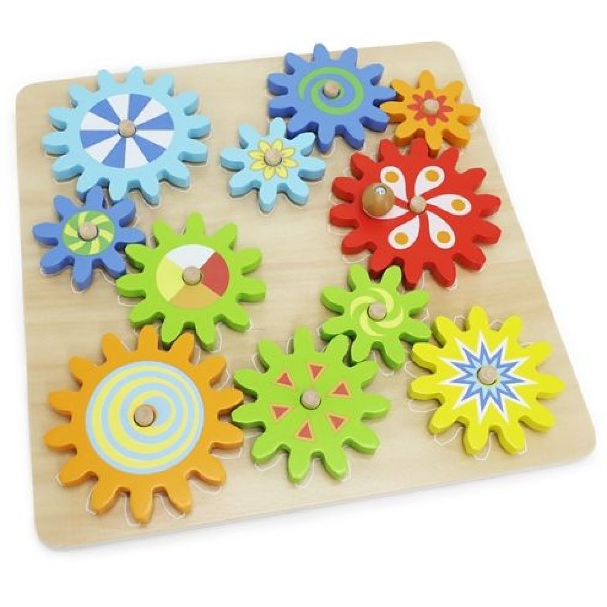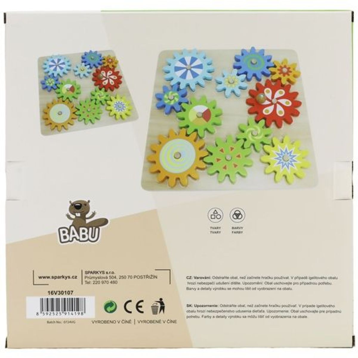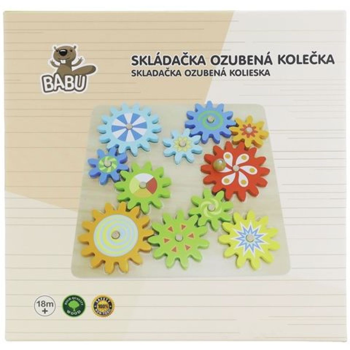 Babu Dřevěná hra s ozubenými kolečky vtáhne děti do světa pohybu a mechaniky. Stačí otočit jedním kolečkem a ostatní se dají do pohybu – zábavná forma učení, která přirozeně rozvíjí logické uvažování i šikovnost prstíků.