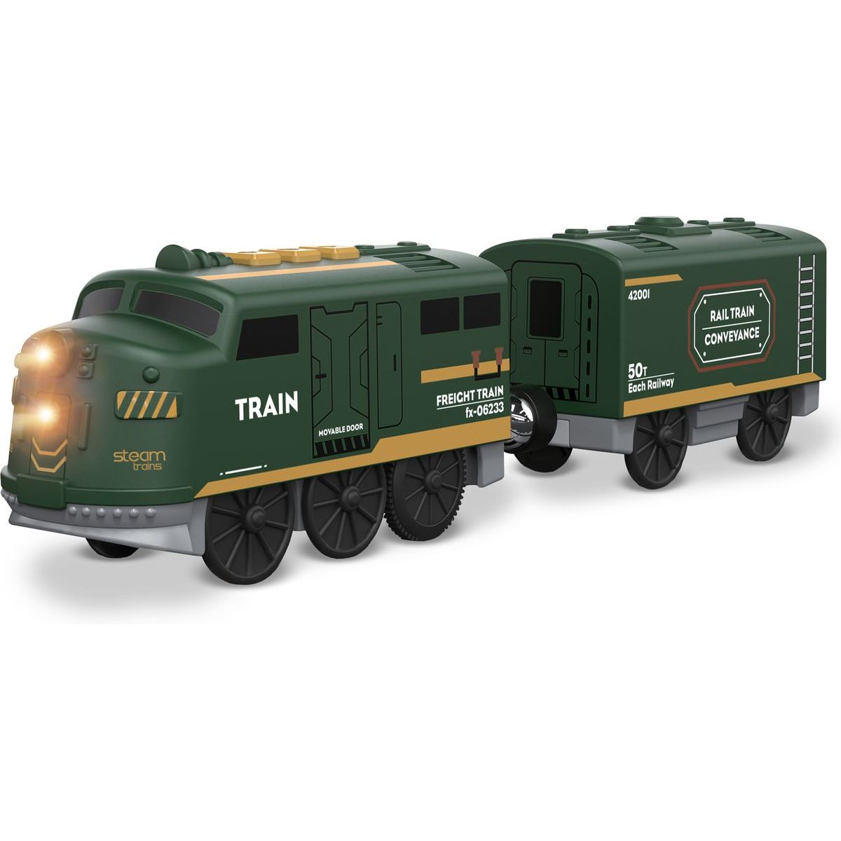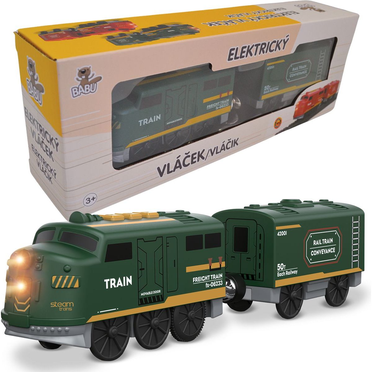 Tento dvoudílný set nabízí snadné ovládání – stačí zmáčknout tlačítko a vláček pojede vpřed nebo vzad. Nechybí ani funkce STOP pro bezpečné hraní, světelné efekty a realistické zvuky, které dodají hře opravdovou atmosféru. Díky magnetickému spojení se vozy jednoduše připojují a odpojují.