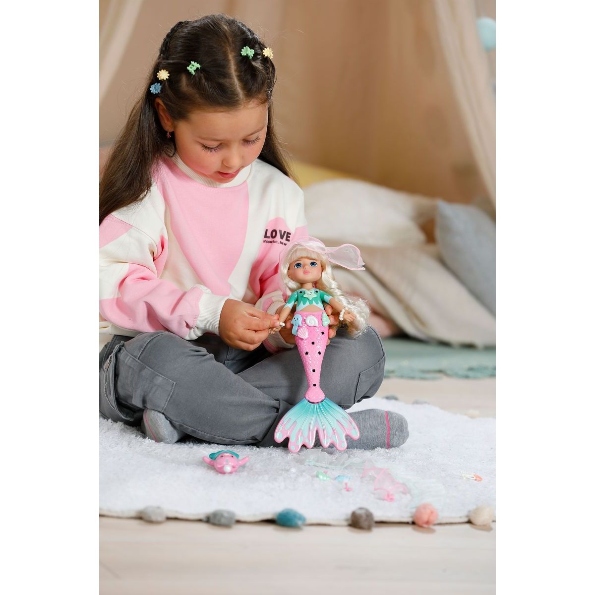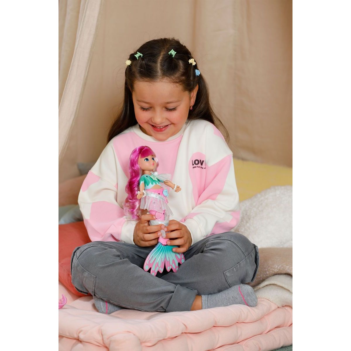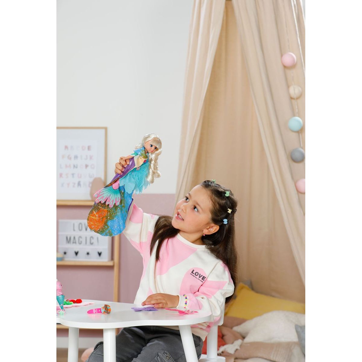 BABY born Mořská víla Sparkle zavede děti do kouzelného podmořského světa plného třpytu a fantazie. Roztomilá vílí panenka se stane první kamarádkou, se kterou mohou děti objevovat radost ze hry a vytvářet vlastní pohádkové příběhy.