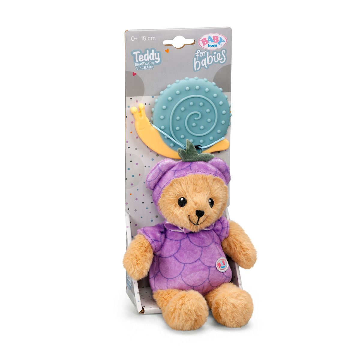 Medvídek Teddy převlečený za borůvku je ideálním společníkem pro vaše miminko od narození.