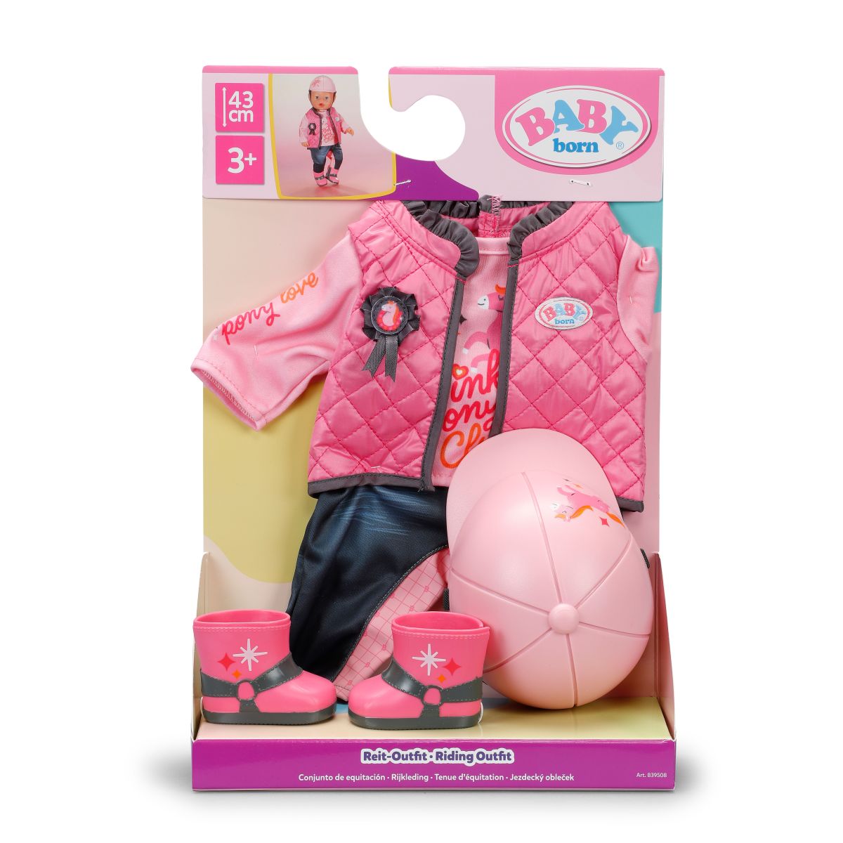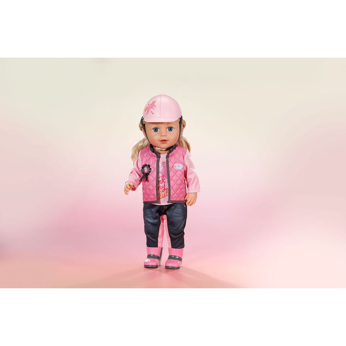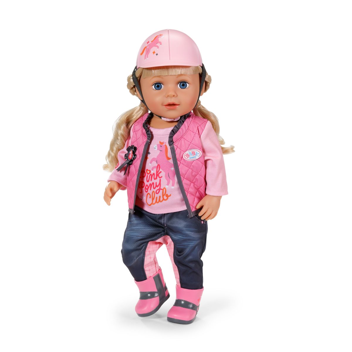 Jezdecká souprava pro panenky BABY born ve stylové růžovo-šedé kombinaci přináší spoustu zábavy všem malým jezdkyním.