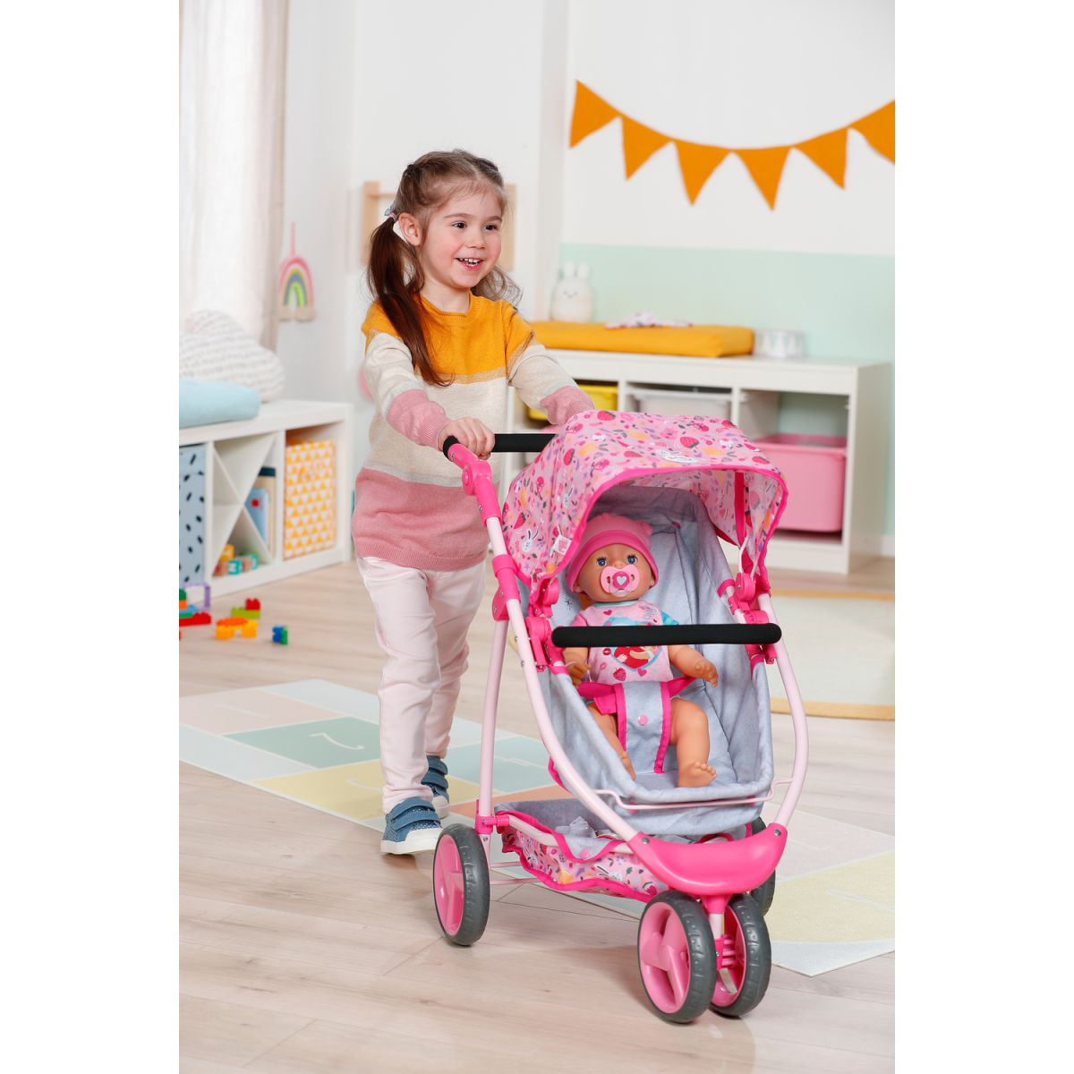Tříkolový design dělá z kočárku lehkého společníka, který zvládne každou trasu. Nastavitelné madlo zajistí, že si jízdu užijí děti různého věku. Po hraní se kočárek jednoduše složí, takže doma zůstane dostatek místa i na další hry. Tento kočárek je ideální parťák pro malé maminky a tatínky, kteří chtějí své panence dopřát pohodlí i styl.