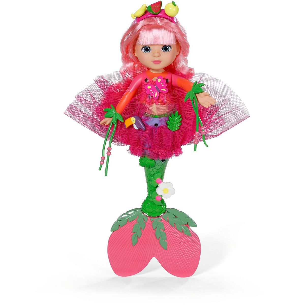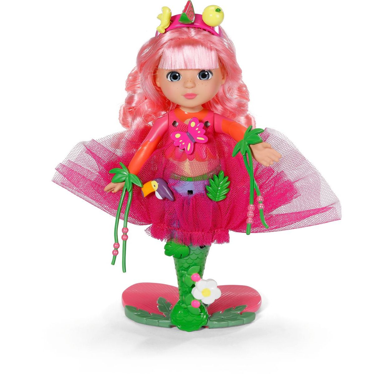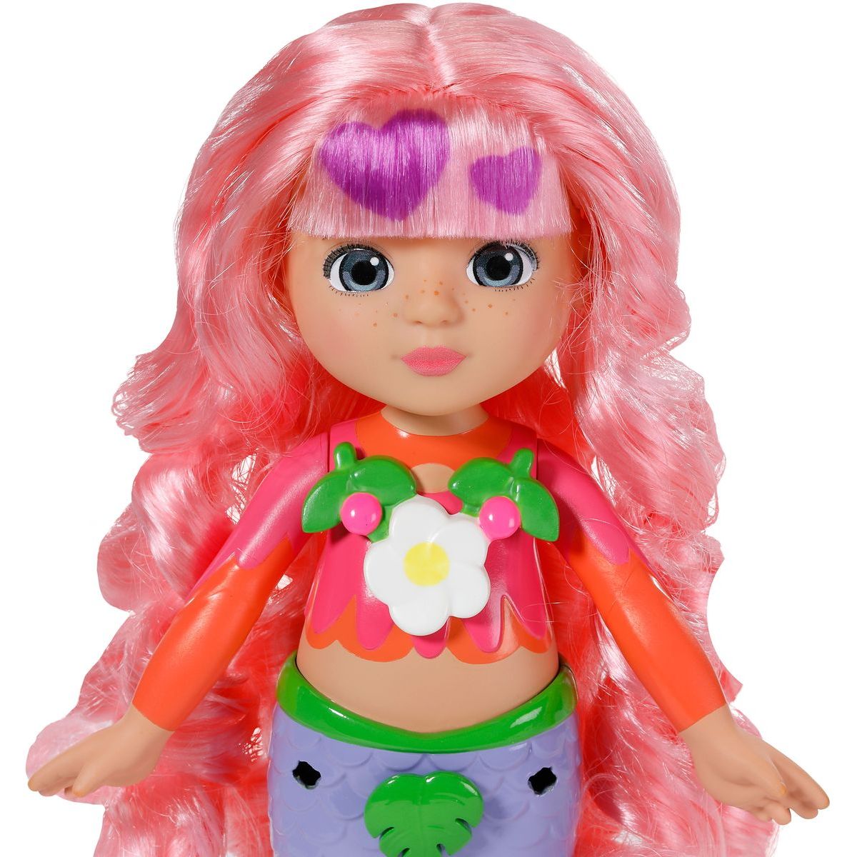 BABY born Mořská víla Sunshine zve děti od 4 let do světa fantazie a tvoření. Její růžové vlasy mění barvu na slunci, což přidává kouzlo každé hře. Děti si mohou panenku česat, zdobit barevnými doplňky a vytvářet nové vzhledy podle svého stylu. Součástí je i roztomilý zvířecí kamarád s odnímatelnou ploutví a brožurka plná inspirace pro další nápady.