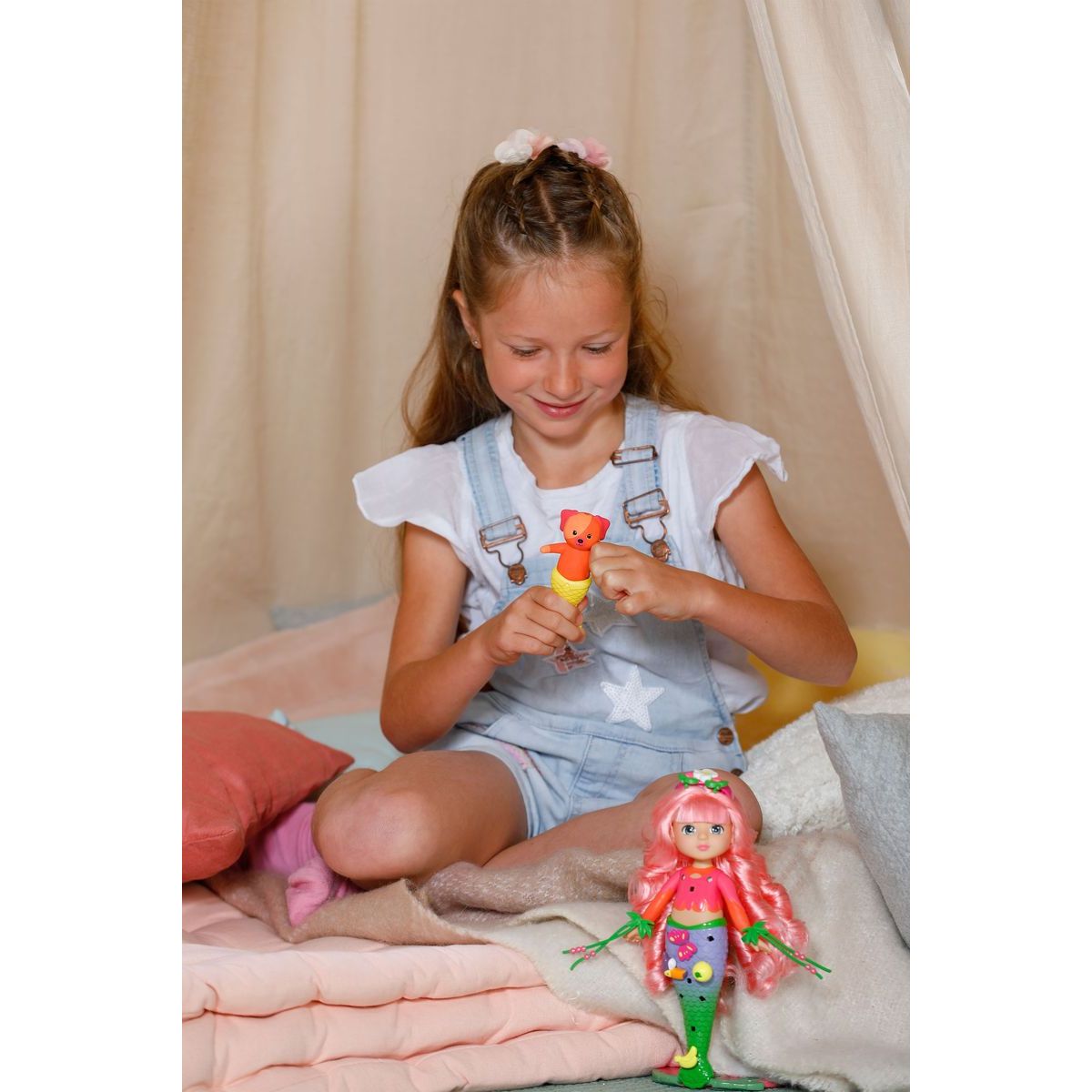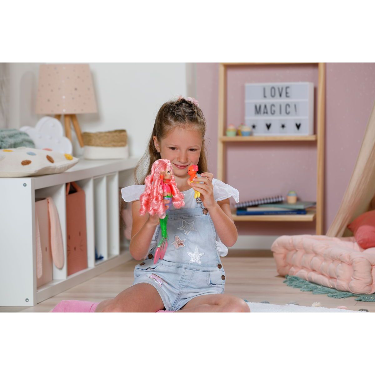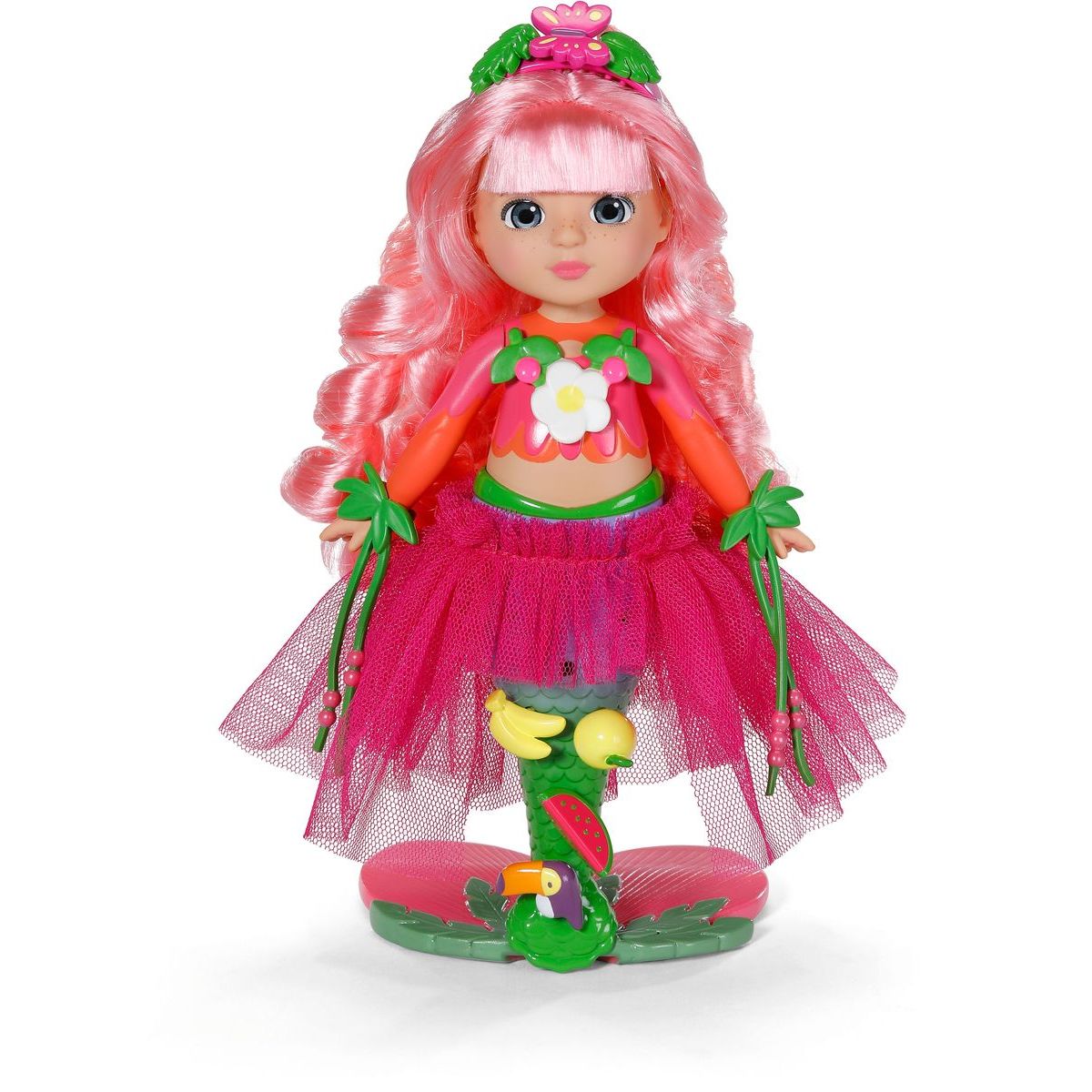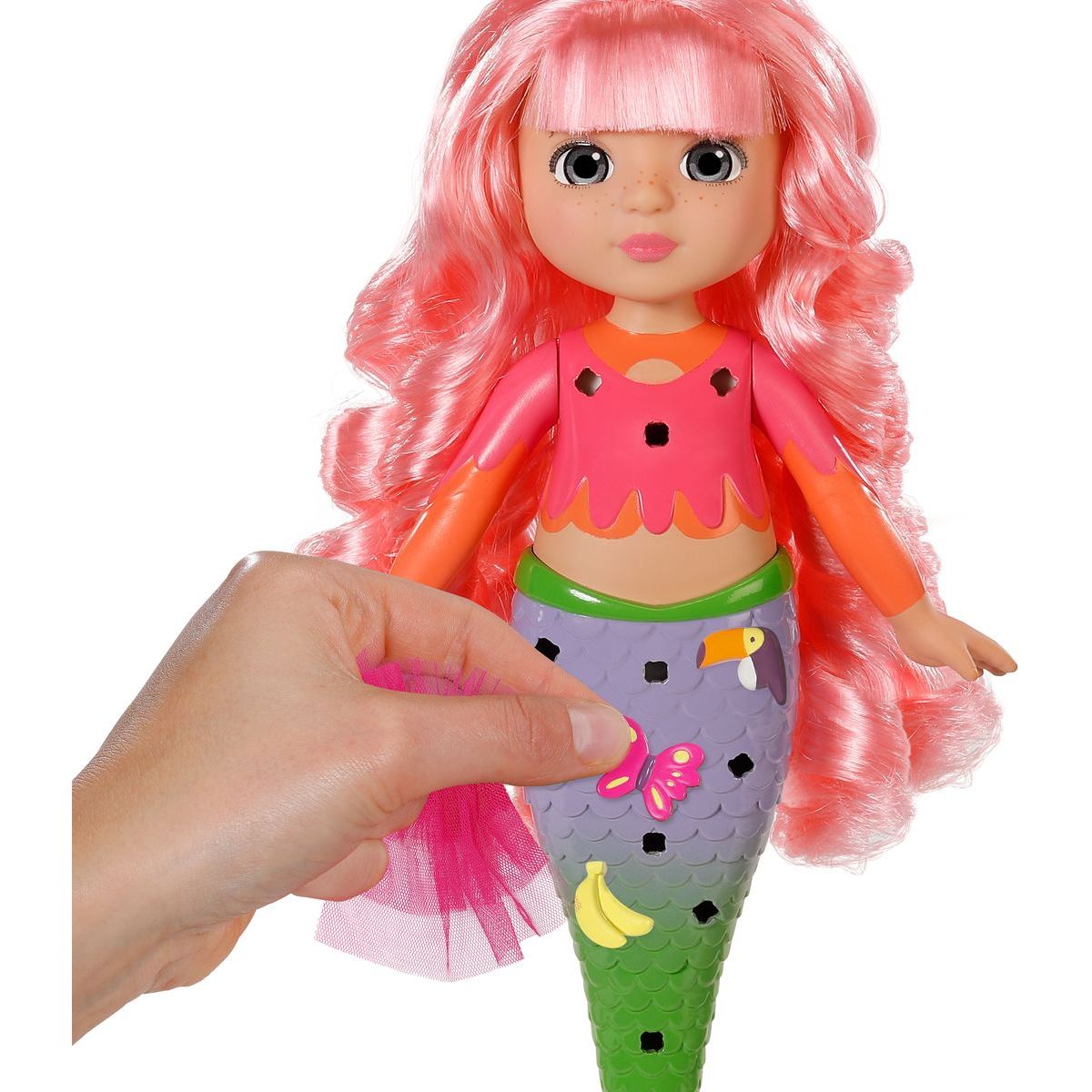 BABY born Mořská víla Sunshine zve děti od 4 let do světa fantazie a tvoření. Její růžové vlasy mění barvu na slunci, což přidává kouzlo každé hře. Děti si mohou panenku česat, zdobit barevnými doplňky a vytvářet nové vzhledy podle svého stylu. Součástí je i roztomilý zvířecí kamarád s odnímatelnou ploutví a brožurka plná inspirace pro další nápady.