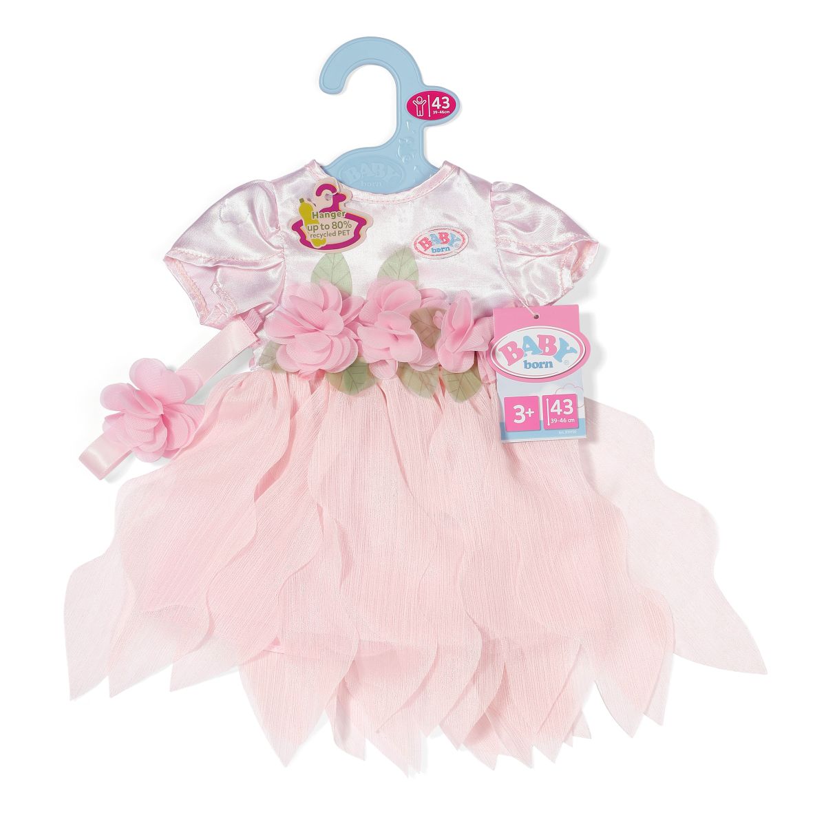 S krásnou květinovou ozdobou a něžnou čelenkou budou vaše panenky připravené na každou pohádkovou oslavu nebo snové hraní plné fantazie. Tyto šatičky jsou vhodné pro panenky velikosti 43 cm i BABY born medvídky a mají ramínko vyrobené z recyklovaného materiálu, což potěší i malé ochránce přírody.