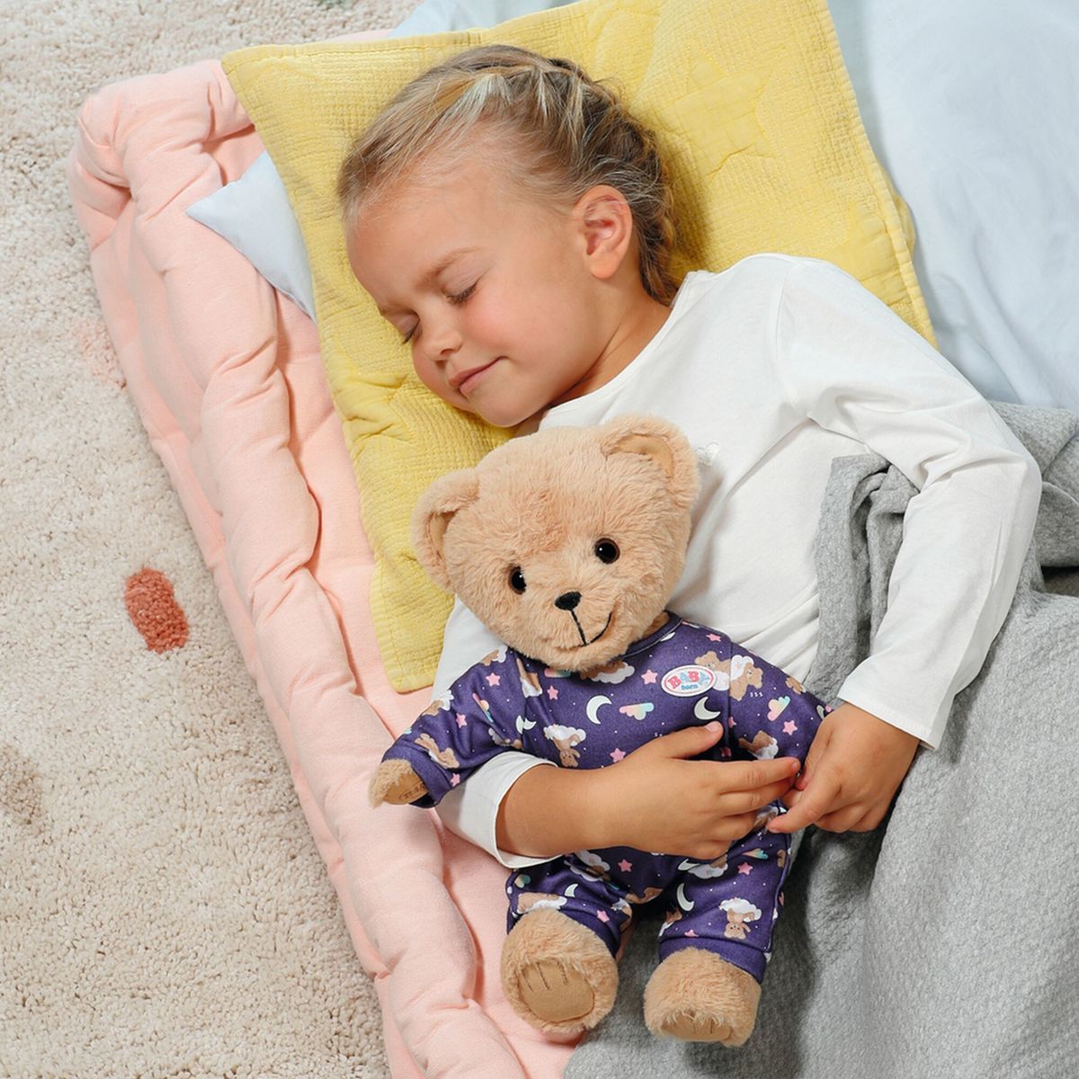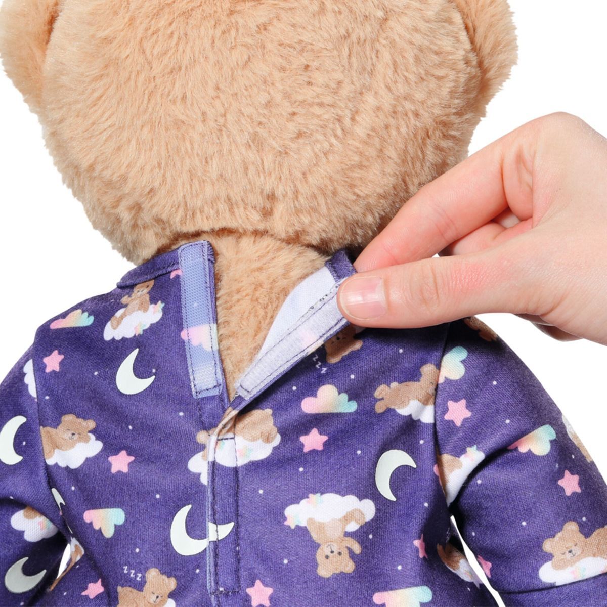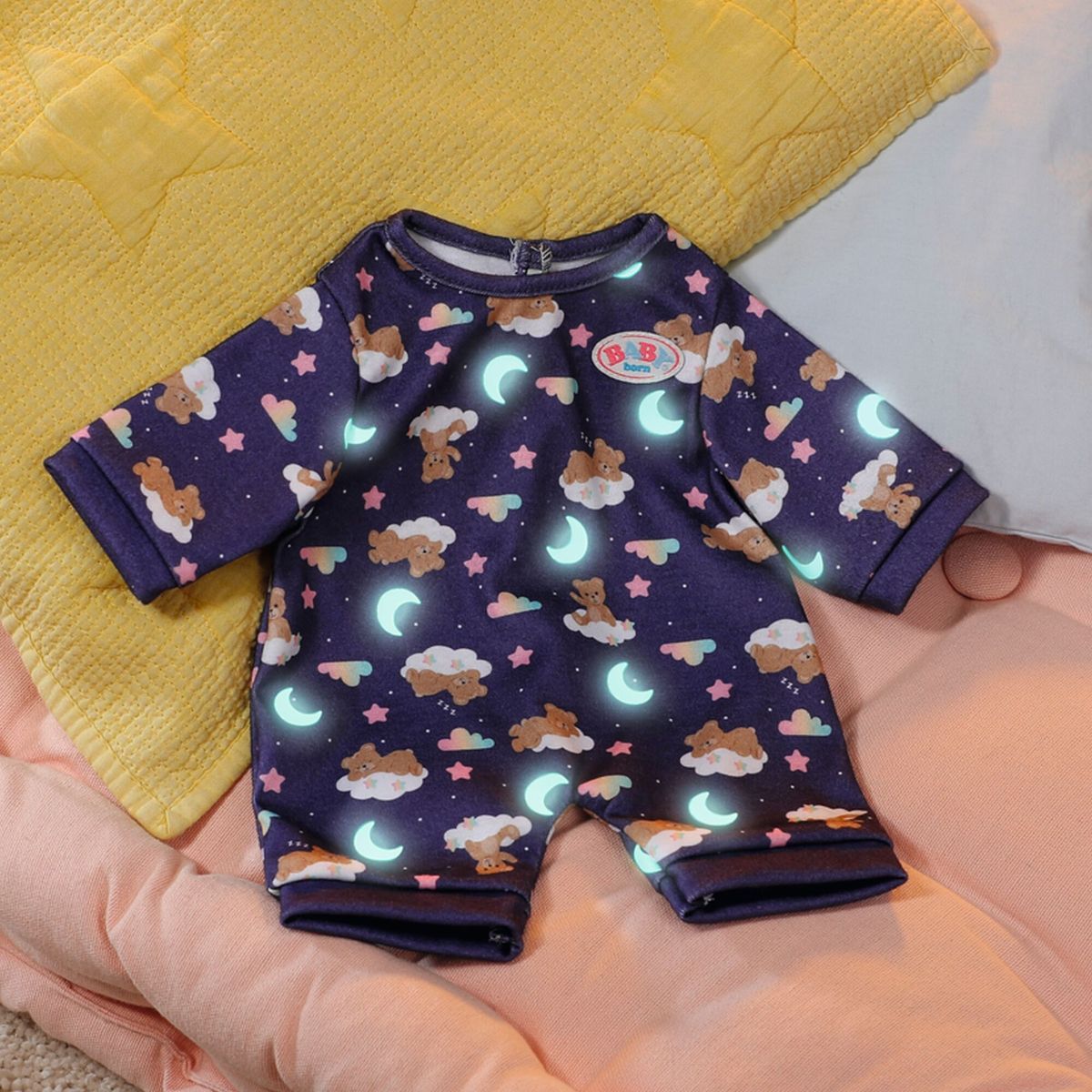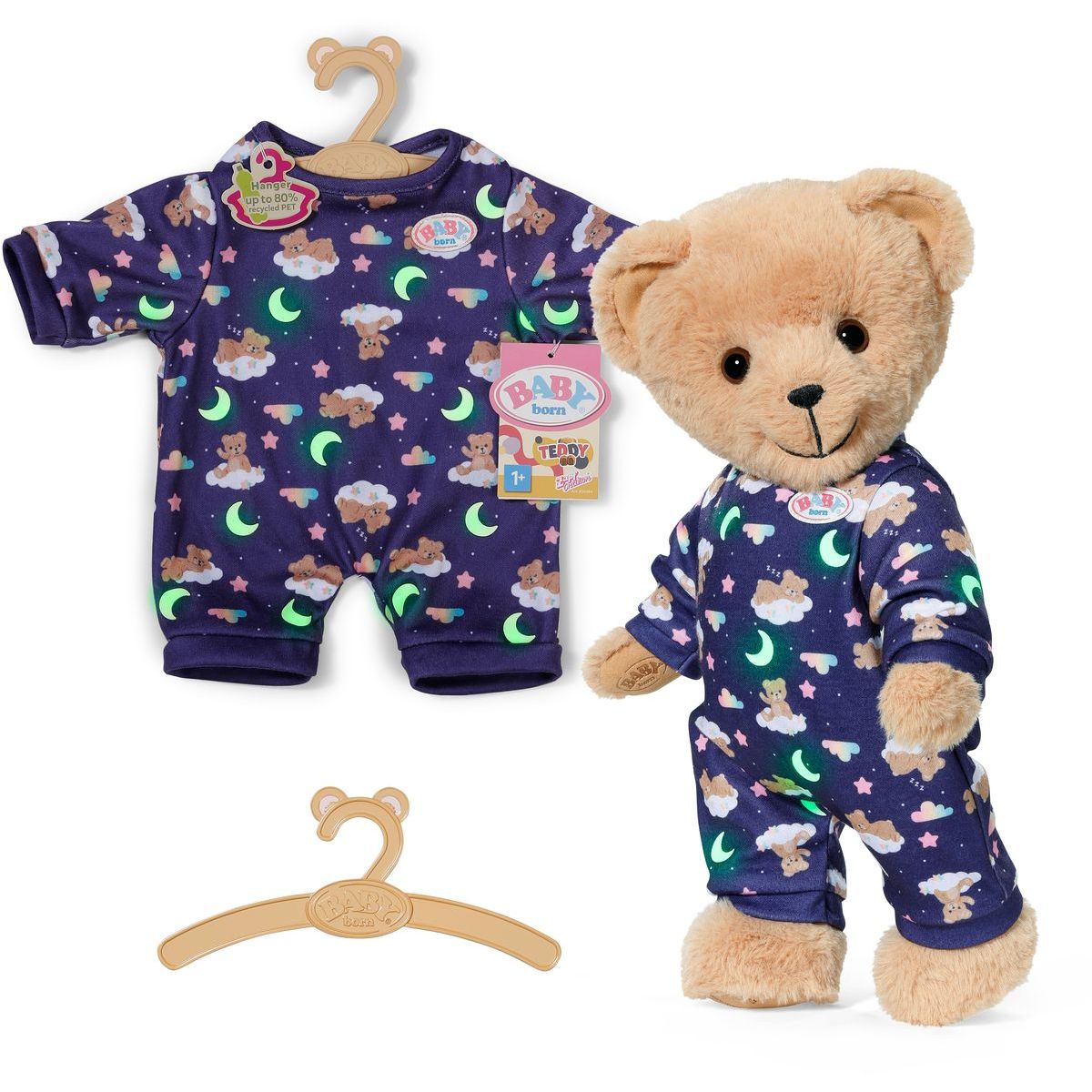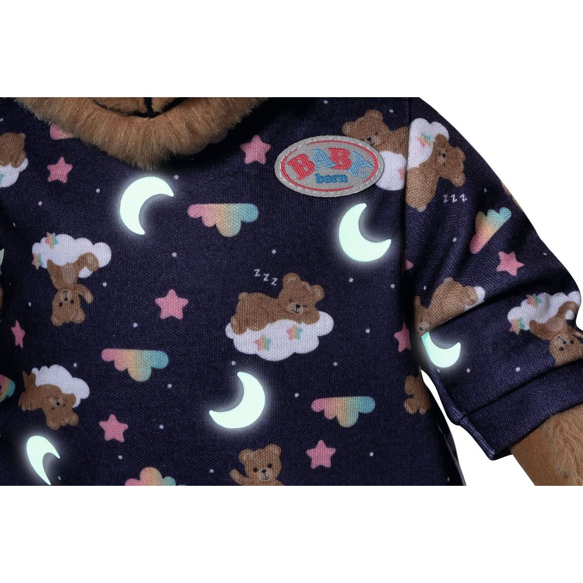 BABY born Teddy v pyžamku, které ve tmě jemně svítí, je skvělý společník pro vaše děti při usínání i hraní. Měsíčky na pyžamku pomáhají navodit pocit bezpečí a podporují dětskou fantazii, což dělá večerní chvíle příjemnějšími. Pyžamko sedí také panenkám velikosti 43 cm, takže si děti mohou užít společné hry s více kamarády.
