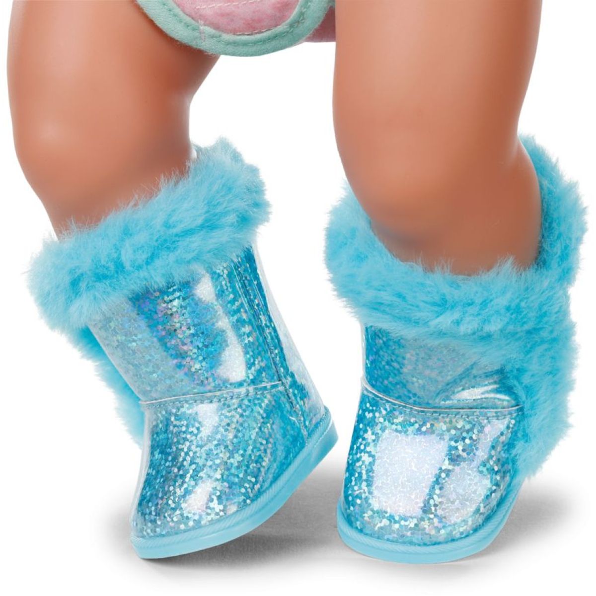 Boty jsou dostupné ve dvou barevných variantách – modré a růžové – a díky chloupkům uvnitř zahřejí nožičky panenky během hraní i odpočinku.