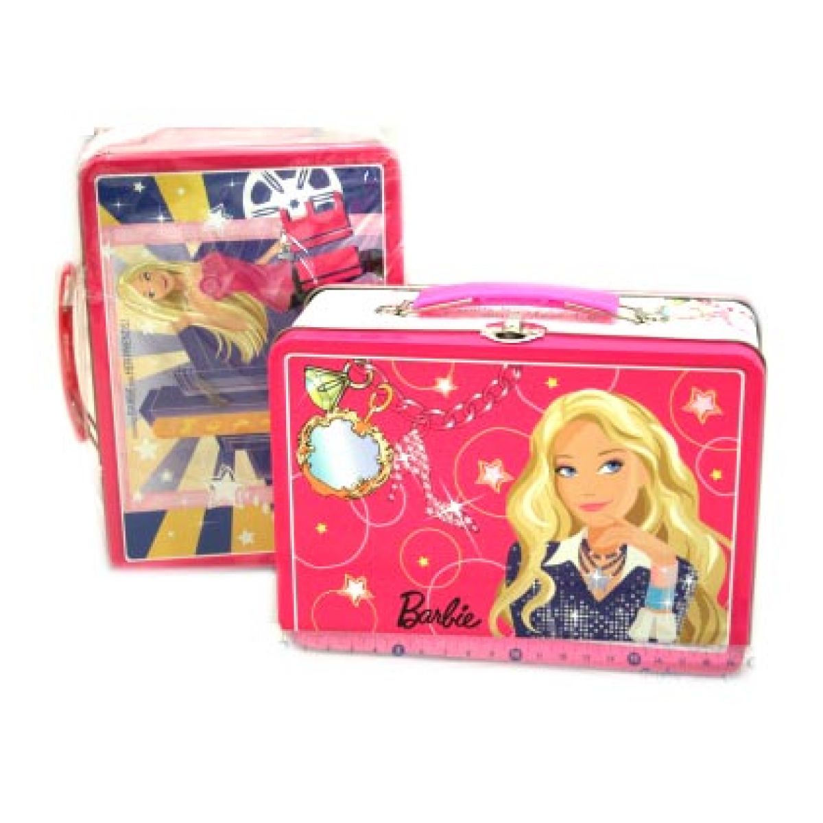 Plechový kufřík s motivem Barbie. Kufřík má madlo a pevnou přezku. 2 druhy.