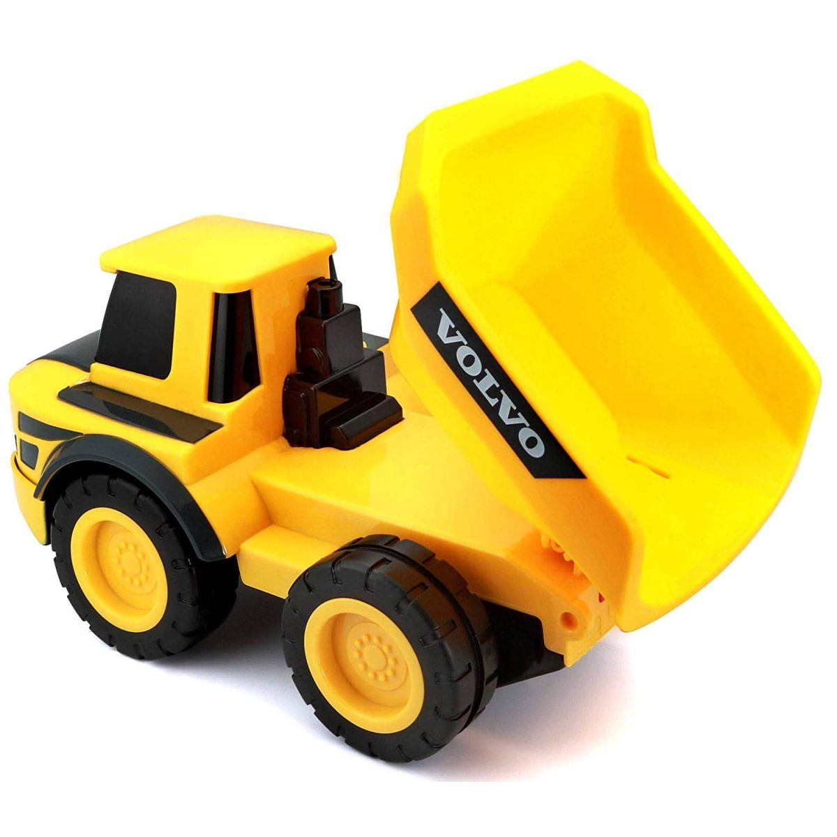 Žlutý náklaďák značky Volvo přijíždí za nejmenšími dětmi s velkýma veselýma očima.