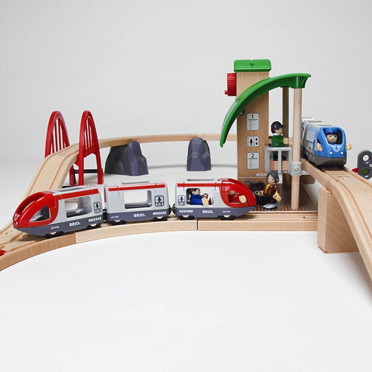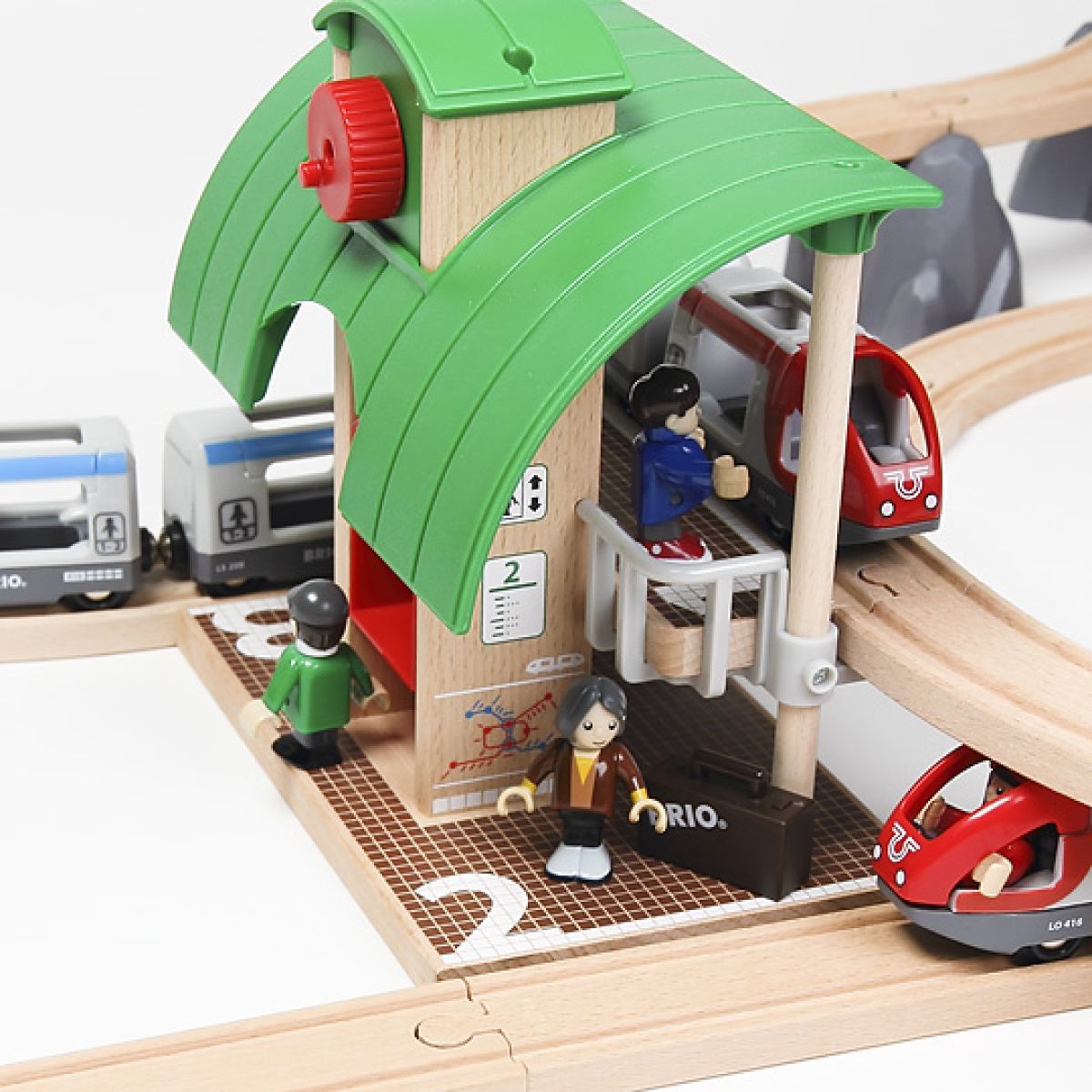 Dvouúrovňová dráha s vláčkem, zastávkou a dalším příslušenstvím je setem korespondujícím s vláčkodráhami stejné značky Brio. Mašinky a vagonky na dráze se dají šikovně zapojovat pomocí napevno osazených magnetků.