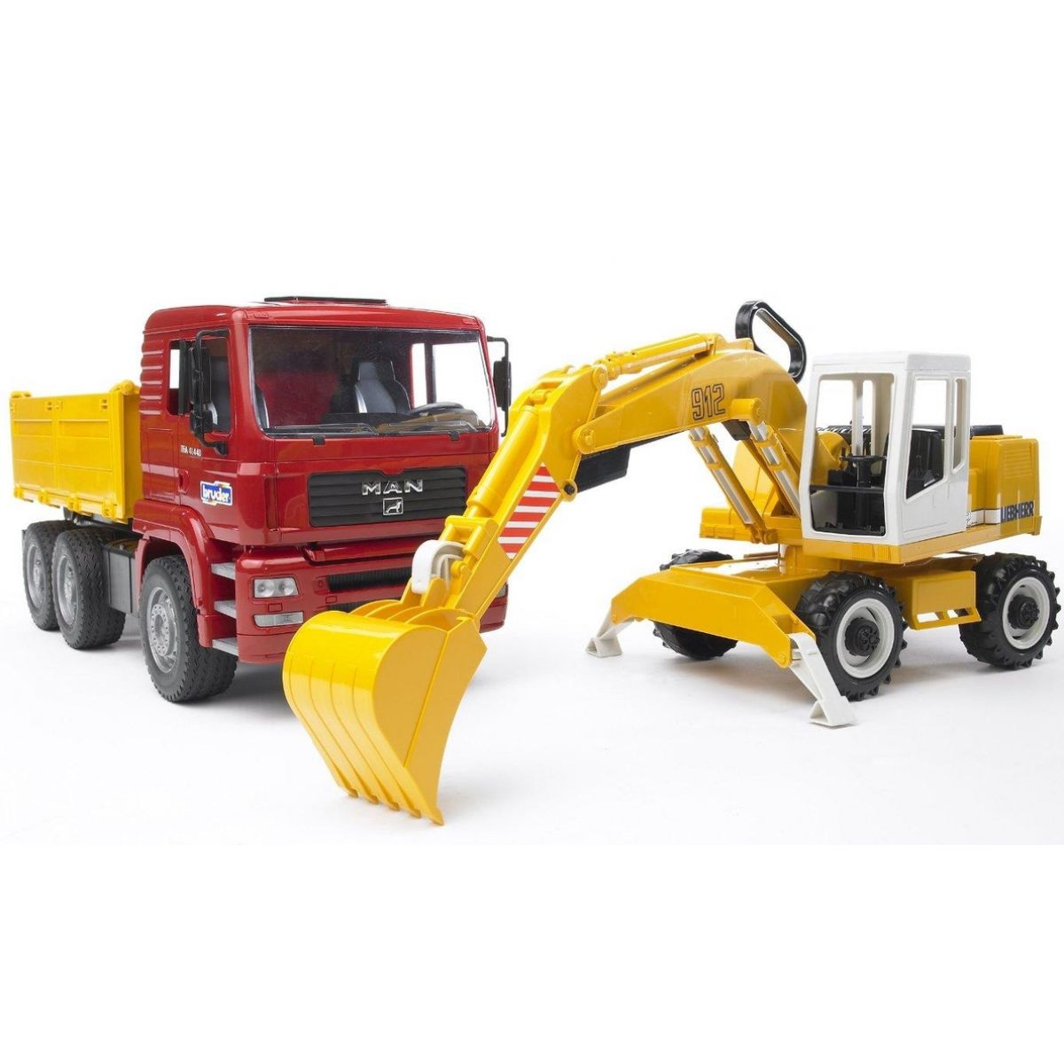 Nákladní auto Man je jedním z detailně zpracovaných modelů v měřítku 1:16. Kluci mohou po stabilizaci bagru bočními rozpěrami otáčet ramenm bagru v rozmezí 360° a bagrovat zeminu a nakládat ji na sklopnou žlutou korbu náklaďáku s červenou kabinou.