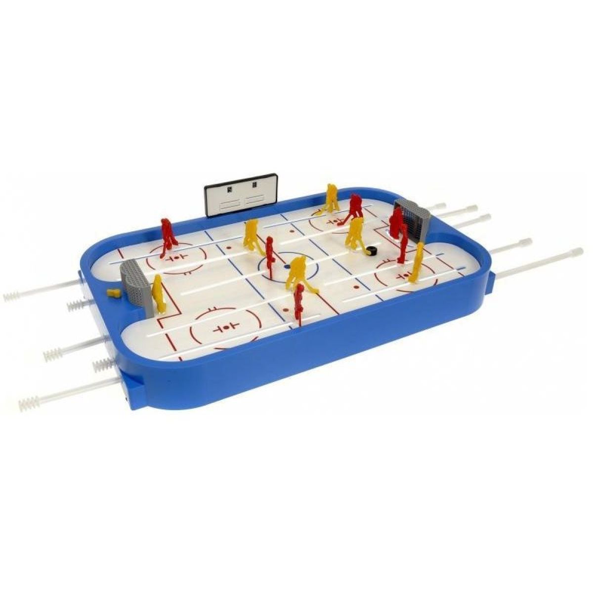 Jeden z nejpopulárnějších sportů pro chlapce, tentokrát ve stolní podobě. Plastová plocha opatřená brankami a mantinely má kromě nasazených figurek hráčů i hráče náhradní. Je vybavena také ukazatelem skóre.