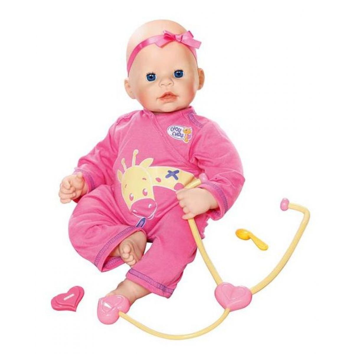 Pokud panenka CHOU CHOU „Maminko, uzdrav mě“ pláče, změř jí teplotu. Má-li horečku, zčervenají jí tvářičky. Ty jí dáš lék a ona se uzdraví!
