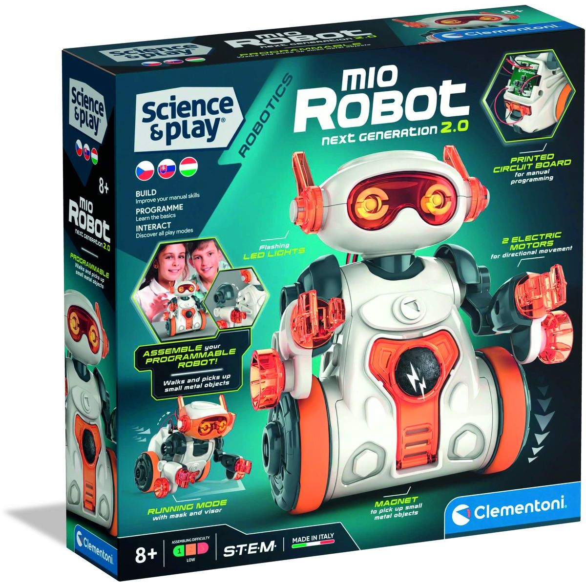 Robot Mio od Clementoni přináší dětem možnost poznat základy robotiky hravou formou. Díky jednoduché montáži a různým herním režimům si děti od 8 let užijí spoustu zábavy i učení najednou. Mio umí chodit, ohýbat se a díky silnému magnetu může přenášet malé předměty. Je to skvělý způsob, jak rozvíjet technické dovednosti v oblasti STEM.