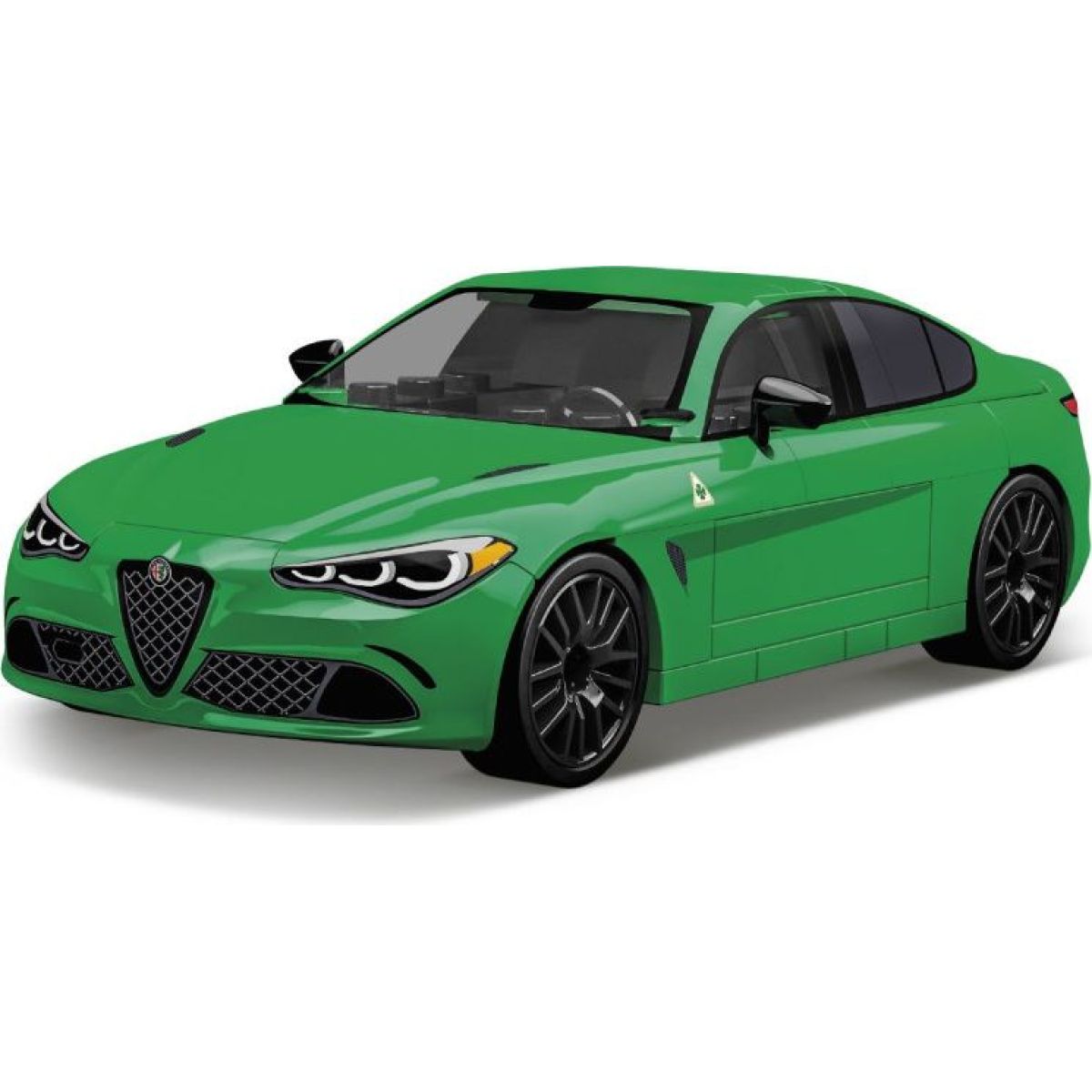 Alfa Romeo Giulia Quadrifoglio v zeleném provedení je námětem pro model, který si mohou kluci sestavit z oblíbené stavebnice Cobi.