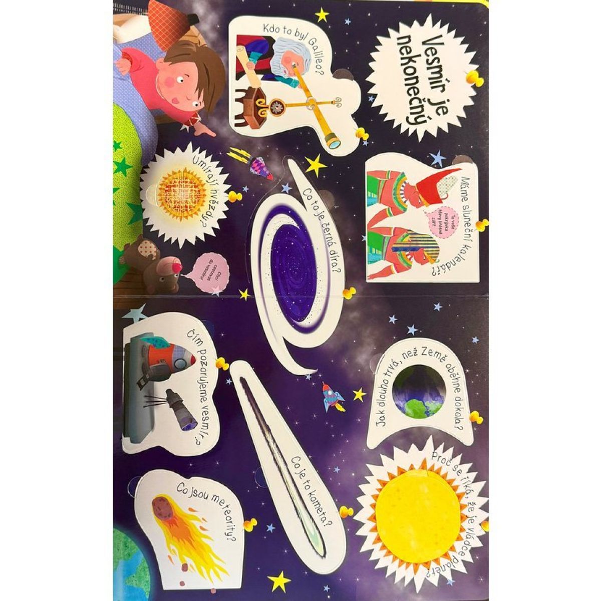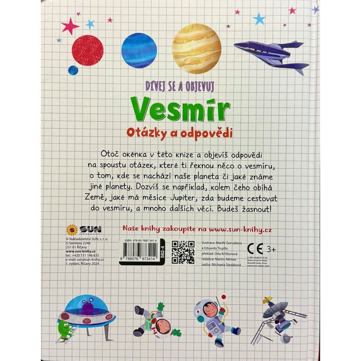 "Dívej se a objevuj – VESMÍR – okénková knížka" zavede malé objevitele do tajemného světa hvězd, planet a kosmických jevů. Více než 60 otevíracích okének nabízí odpovědi na otázky, proč je Země modrá, jak funguje astronomická observatoř nebo zda váha věcí na Měsíci odpovídá váze na Zemi. Kniha rozvíjí zvídavost, kreativitu a vědomosti o vesmíru díky interaktivní formě, která děti baví a motivuje k dalšímu poznávání.