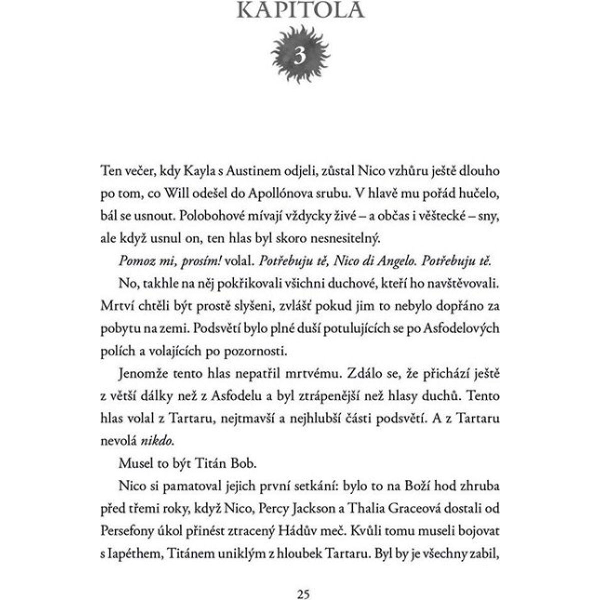 Nico di Angelo jako Hádův syn zažil víc hrůz než kdokoli jiný. Ale i jeho dny prosvětlil paprsek slunce v podobě milovaného Willa Solace, Apollónova syna. Spolu dokážou překonat jakoukoli překážku. Poslední dobou ale Nika volá hlas z Tartaru. Zdá se, že patří napravenému Titánovi, kterého Percy s Annabeth museli opustit během úniku z Hádovy říše. Nico se mu hodlá vydat na pomoc a Will trvá na tom, že ho doprovodí.
