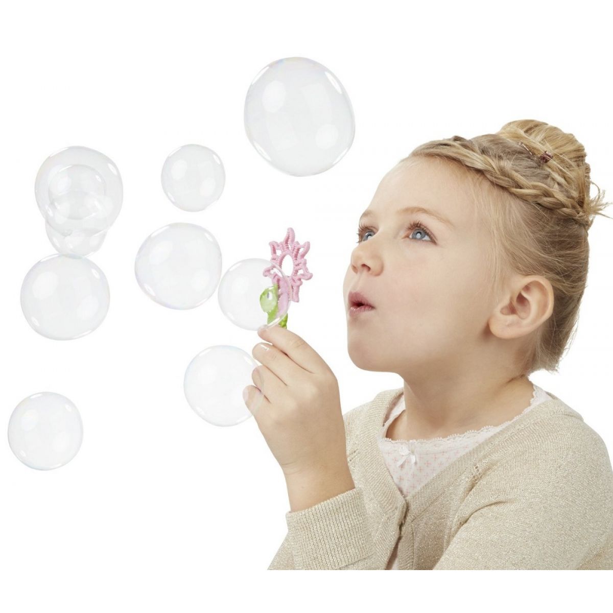 Locika, která umí vykouzlit bubliny. Pokud děti nalijí do zadní části živůtku roztok a zmáčknou sukni princezny Lociky, objeví se jako by kouzlem, bublinová koruna. Panenka má také bublinou hůlku.