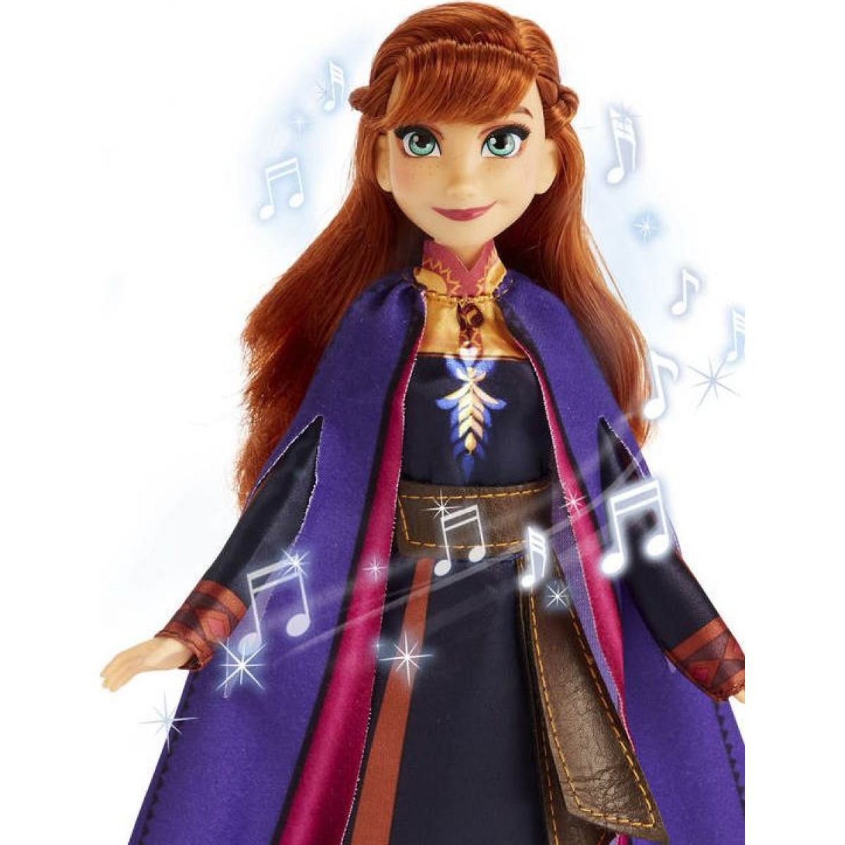 Princezna Elsa z Ledového království zpívající filmovou píseň je oblečena do typických tmavých šatů s fialovým pláštěm. Hnědé vlasy jí splývají pod ramena. Holčičky si s panenkou mohou píseň zazpívat společně. Snadno se tak přenesou do příběhu z Ledového království.