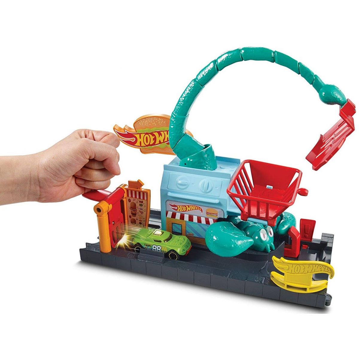 Kluci by se svými vozidly měli zvládnout tento střet s co nejlépe, aby město město Hot Wheels® ochránili před nezvanými hosty.