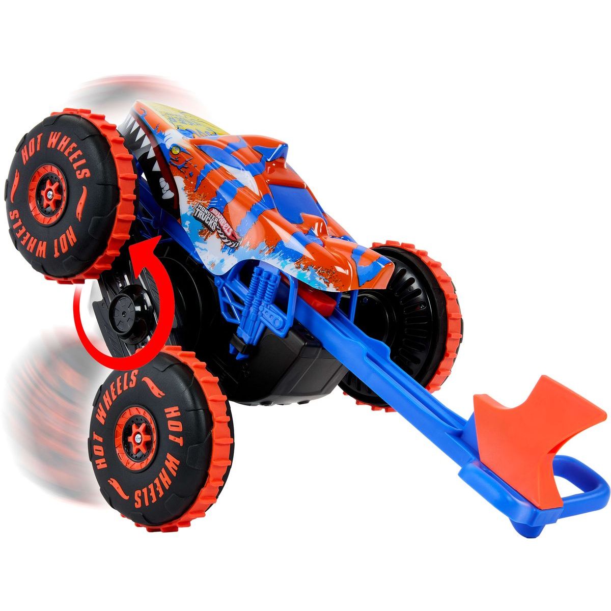 Hot Wheels RC Monster Trucks Lezec Tiger Shark je připravený vyrazit do akce! Díky speciálním pneumatikám Grip Action snadno projede různým terénem a díky prodlouženému ocasu v climber módu dokáže vyšplhat přes překážky jako opravdový šampion. Stačí stisknout tlačítko na ovladači a dobrodružství může začít! Ať už venku nebo doma, tento monster truck vás zabaví svými rychlými manévry i neobvyklým designem.