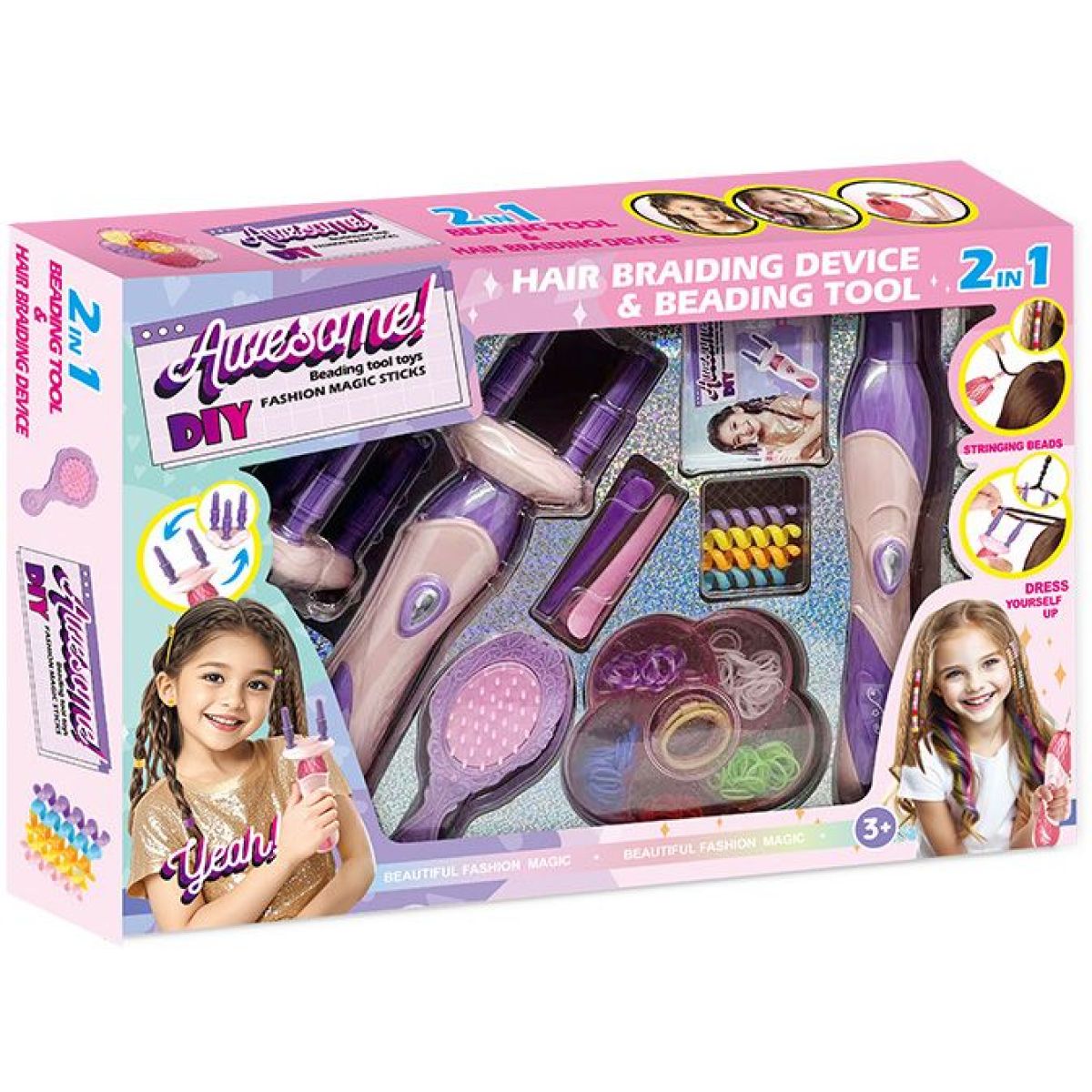 S hracím setem na vlasy 2v1 si můžeš zaplétat copánky, zdobit vlasy barevnými korálky a experimentovat s novými styly.