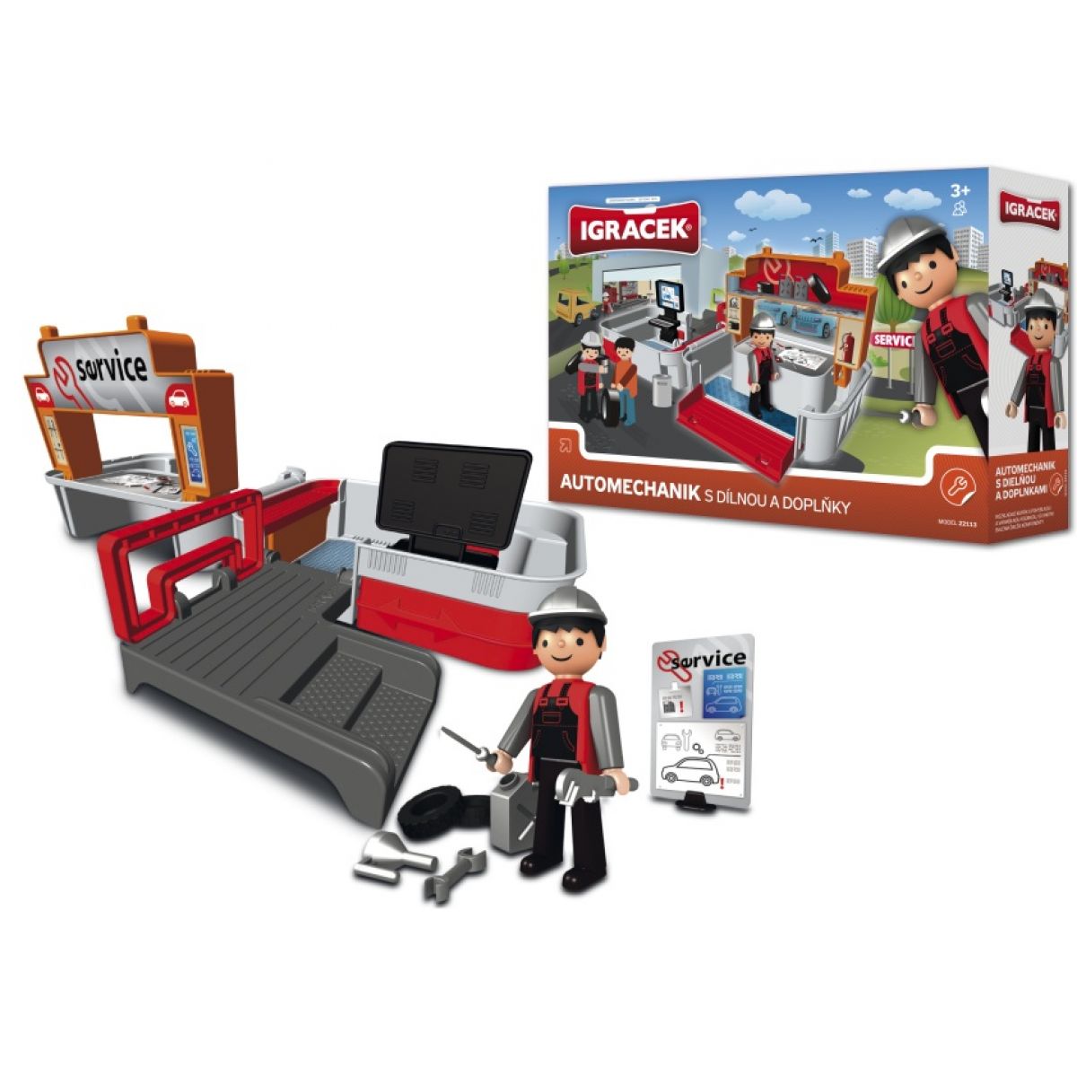 Igráček automechanik a rozkládací kufřík - dílna je oblíbenou hračkou pro děti. Postavička rozvíjí zábavným způsobem dětskou fantazii. Při hraní s Igráčkem se děti nikdy nenudí a poznávají, jaké ve skutečnosti je být automechanikem. Díky rozkládacímu kufříku můžeš lehce Igráčka složit a přesunou své hraní jinam.