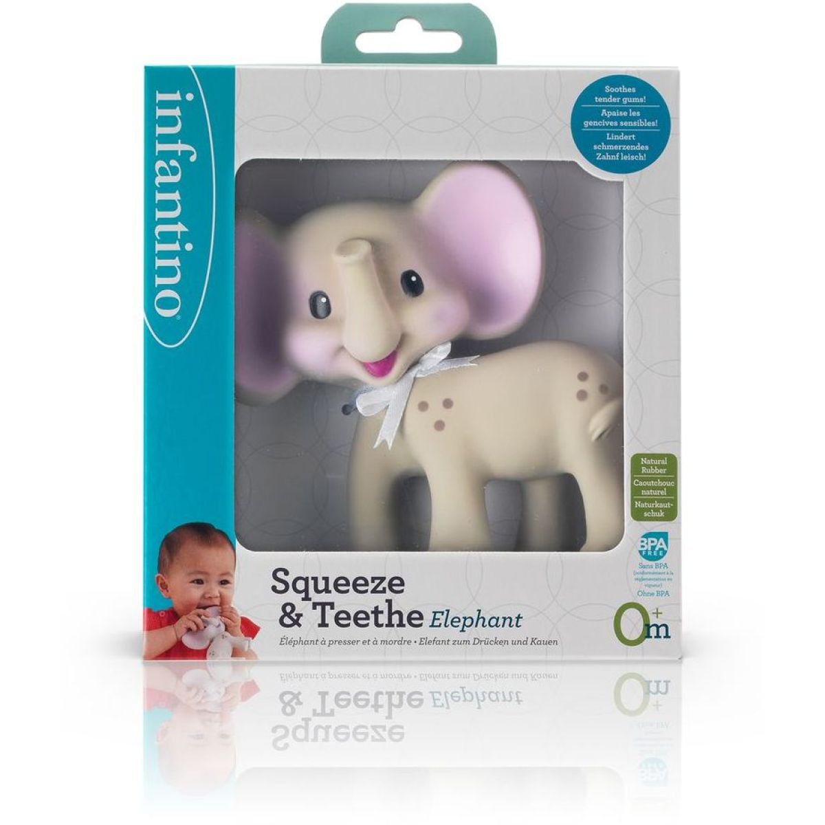 Zažijte radost a pohodlí s kousátkem Infantino z přírodního kaučuku, které je bezpečné a vhodné pro děti od narození. Různé textury pomáhají masírovat dásně a zmírňovat bolest při prořezávání zoubků. Kousátko je lehké, snadno se drží a je bez BPA. Snadno se čistí teplou vodou a jemným mýdlem, což zaručuje hygienu pro vaše dítě.