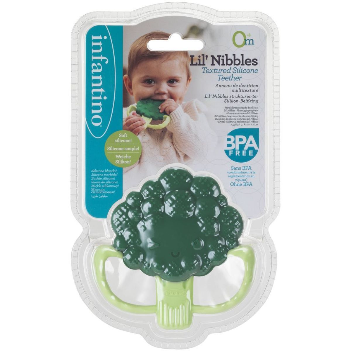 Infantino kousátko ve tvaru usměvavé brokolice. Vyrobené z měkkého silikonu, nabízí různé textury, které pomáhají dětem při prořezávání zoubků a jsou snadno uchopitelné malými ručičkami. Kousátko je bezpečné a vhodné pro děti od narození.
