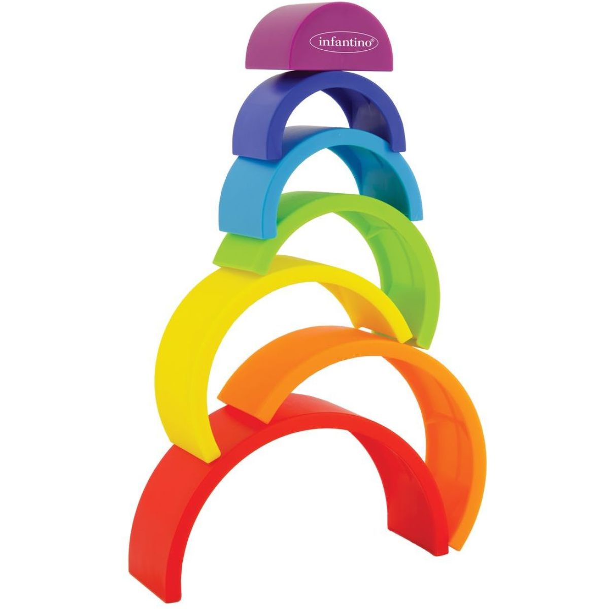Infantino Skládačka duha Magic Rainbow přináší do hry zábavu i učení. Pestrobarevná 7-dílná duha umožňuje dětem stavět a skládat různé kombinace, čímž rozvíjí jemnou motoriku, logické myšlení a prostorovou představivost. Díky bezpečným a odolným materiálům je skládačka vhodná pro každodenní hraní a objevování.