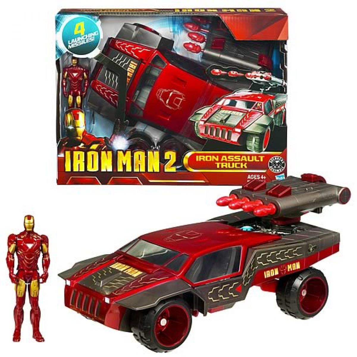 Akční vozidla se zbraněmi a figurkou Iron Mana.