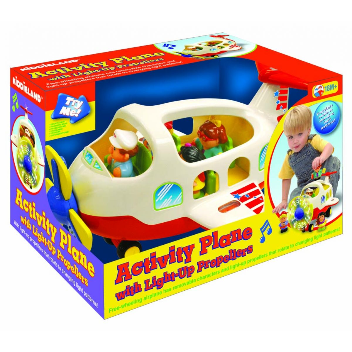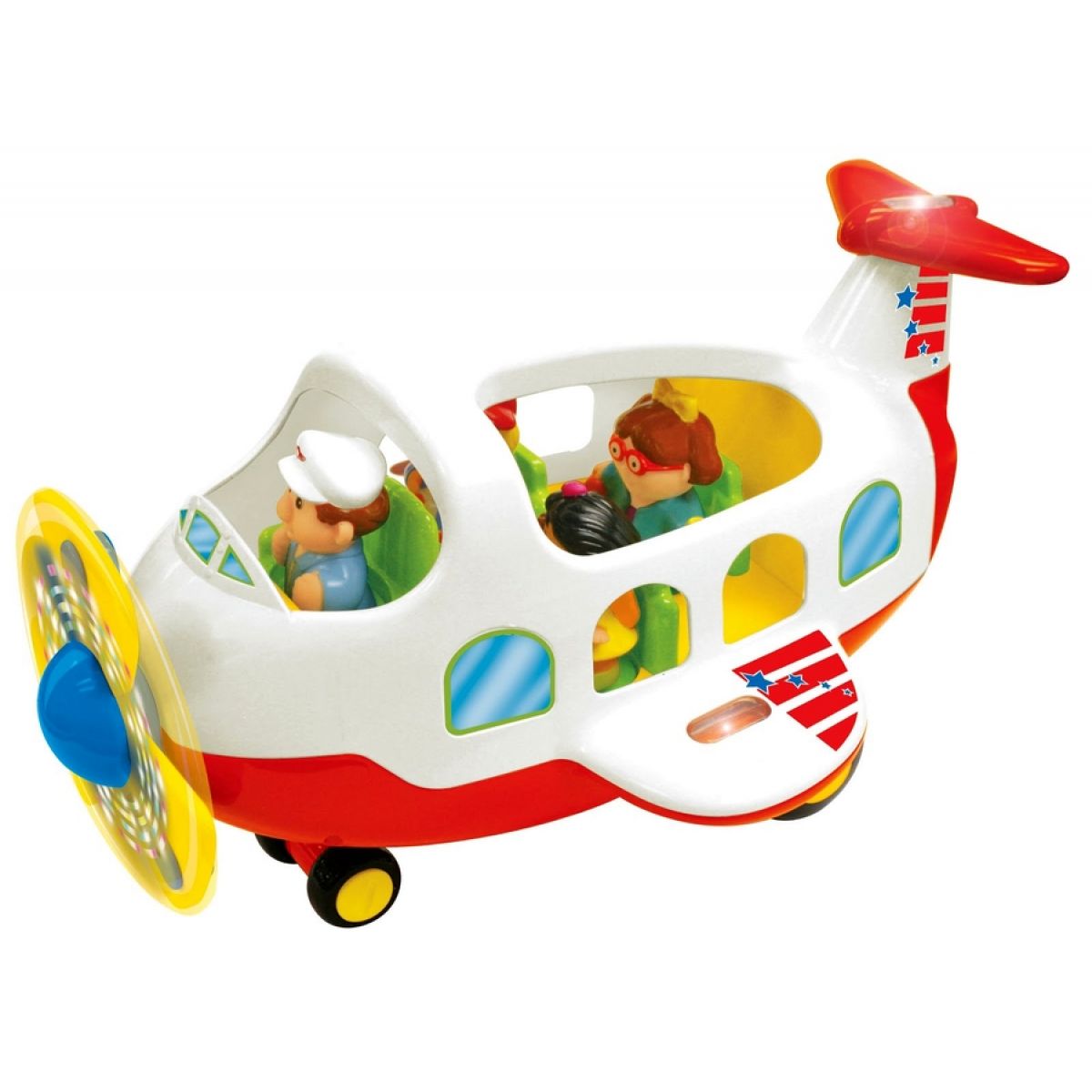Kvalitní plastová hračka pro nejmenší. Letadlem lze pohybovat jako autíčkem. Vydává zvuky jako při startu a při přistávání a hraje melodie. Součástí hračky jsou tři figurky (pilot a pasažéři), které se dají vyndavat a zpět usazovat do sedadel.